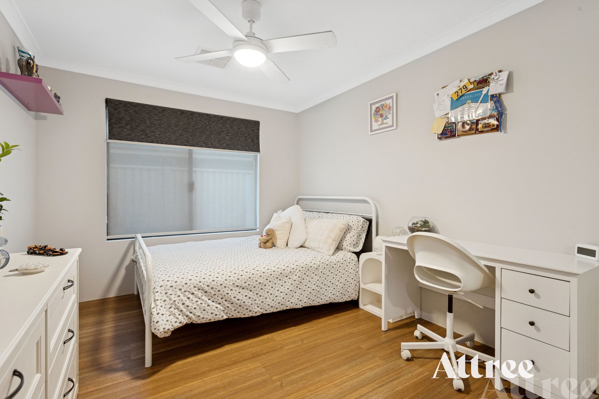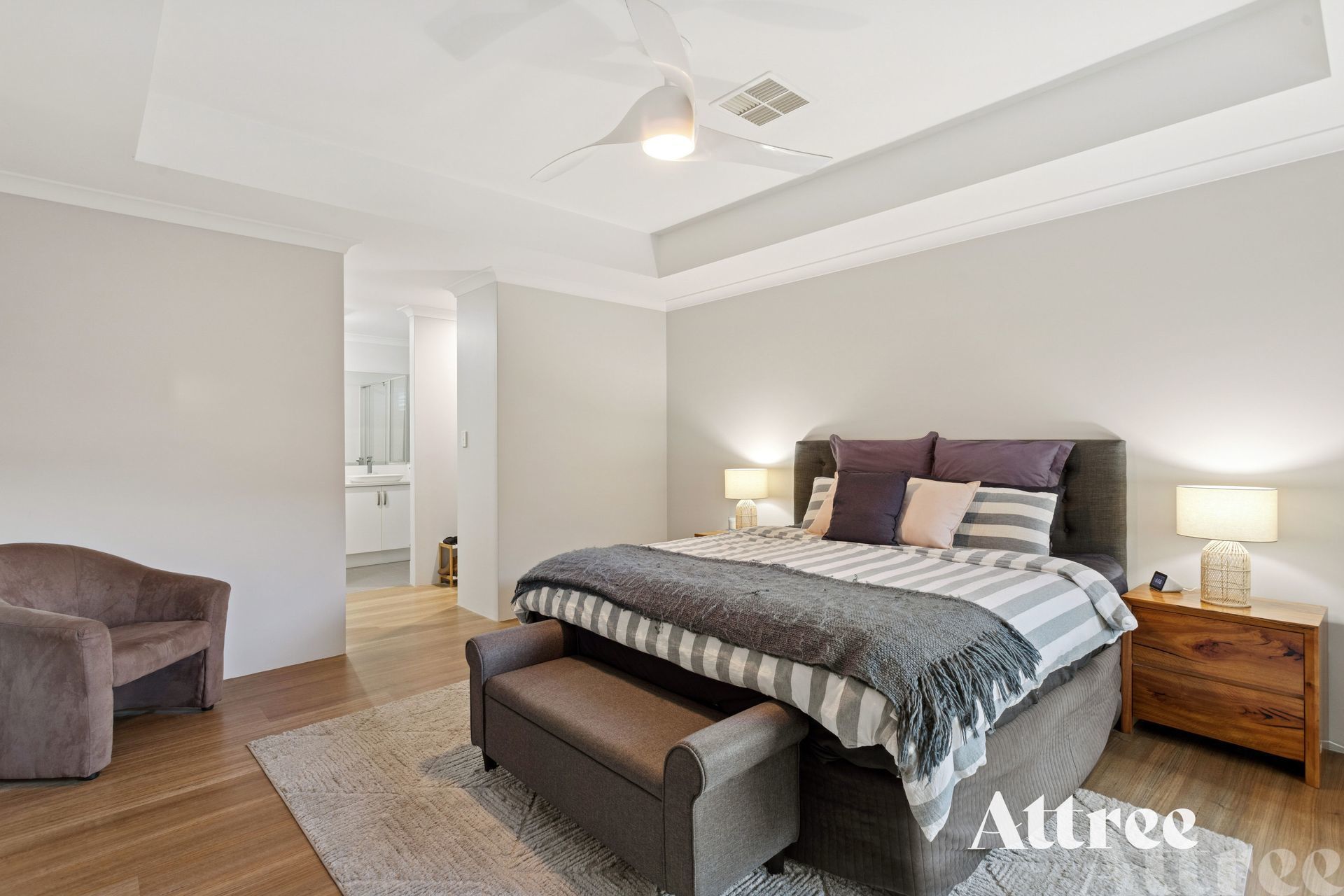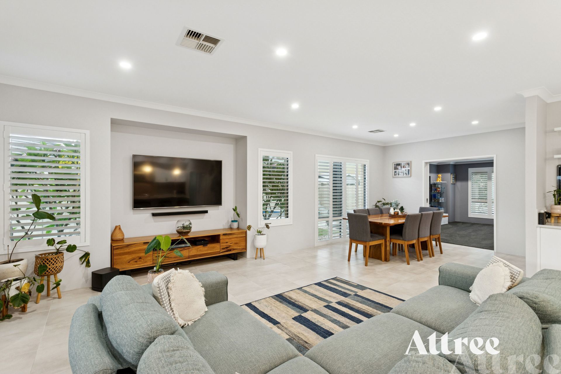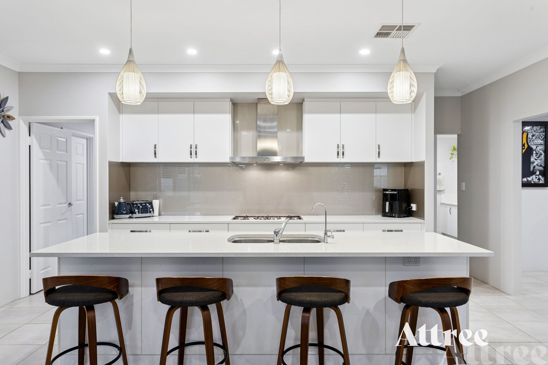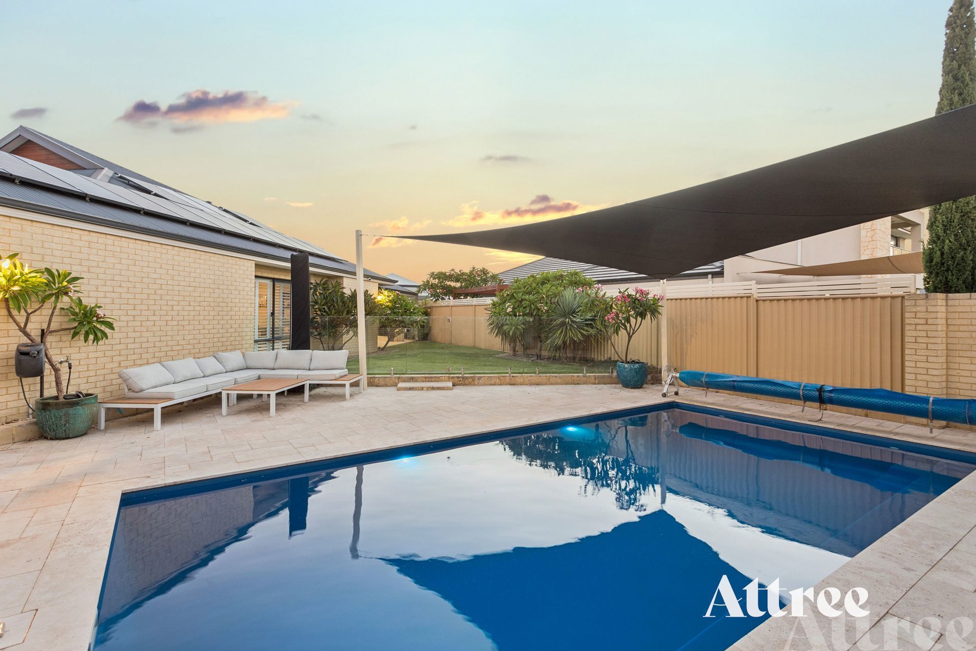 Outside, entertain in style under the large alfresco area fitted with roller blinds, creating an additional outdoor living space. The backyard is laid out like a five-star resort, with beautifully manicured lawns and gardens leading to a feature below-ground swimming pool-perfectly suited to the Perth lifestyle. Liquid limestone surrounds the home and driveway, and with excellent parking options including a third garage, there is plenty of room for the whole family.