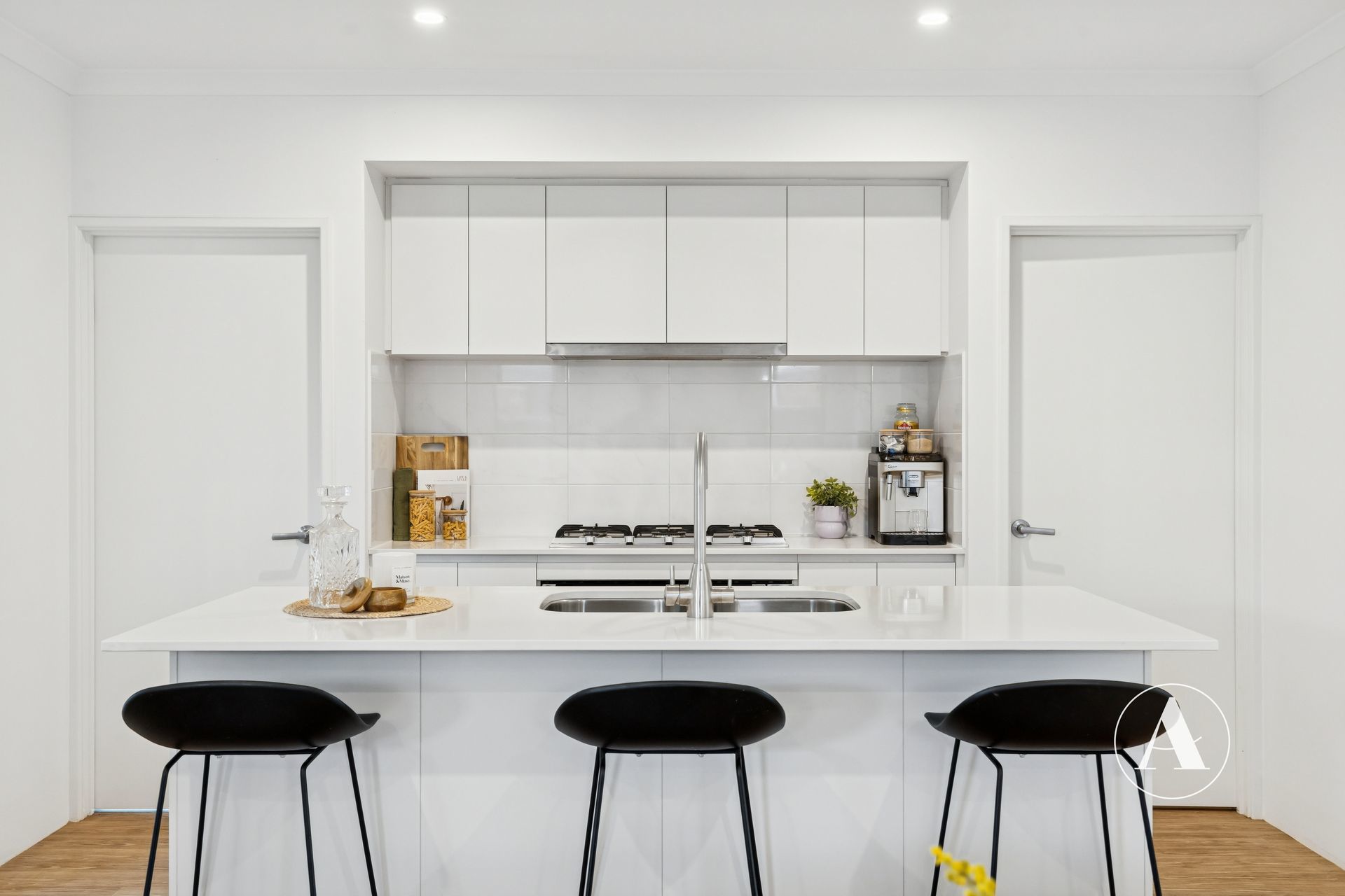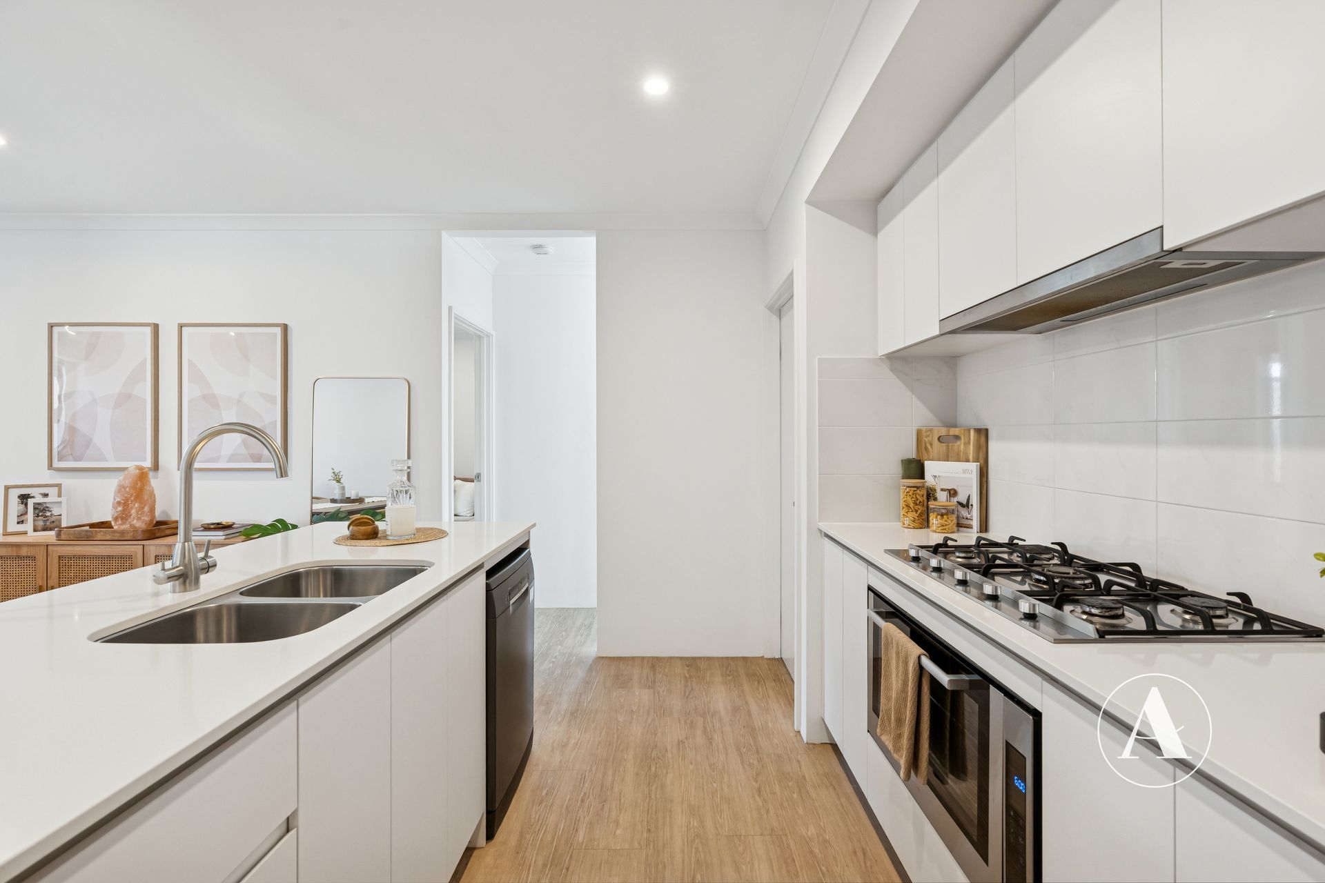 • The heart of the home, this kitchen offers generous bench space, a central island, overhead cupboards, a walk-in pantry, built-in filtered water tap and premium stainless-steel appliances, including a 900mm gas cooktop and oven.