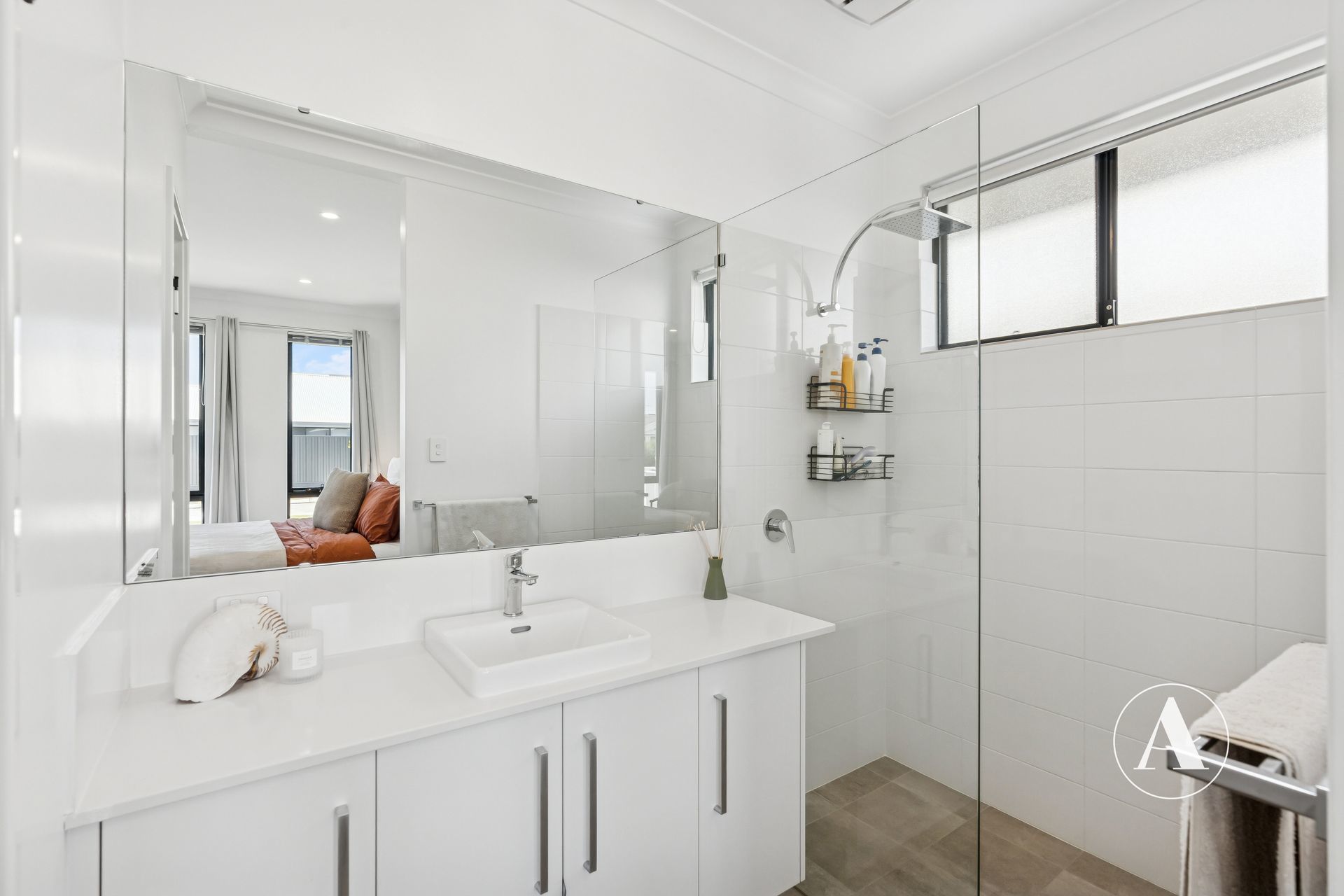 • The primary bedroom is spacious, offering a fitted-out walk-in robe and sparkling ensuite with stone benchtops as well as a large hobless shower.