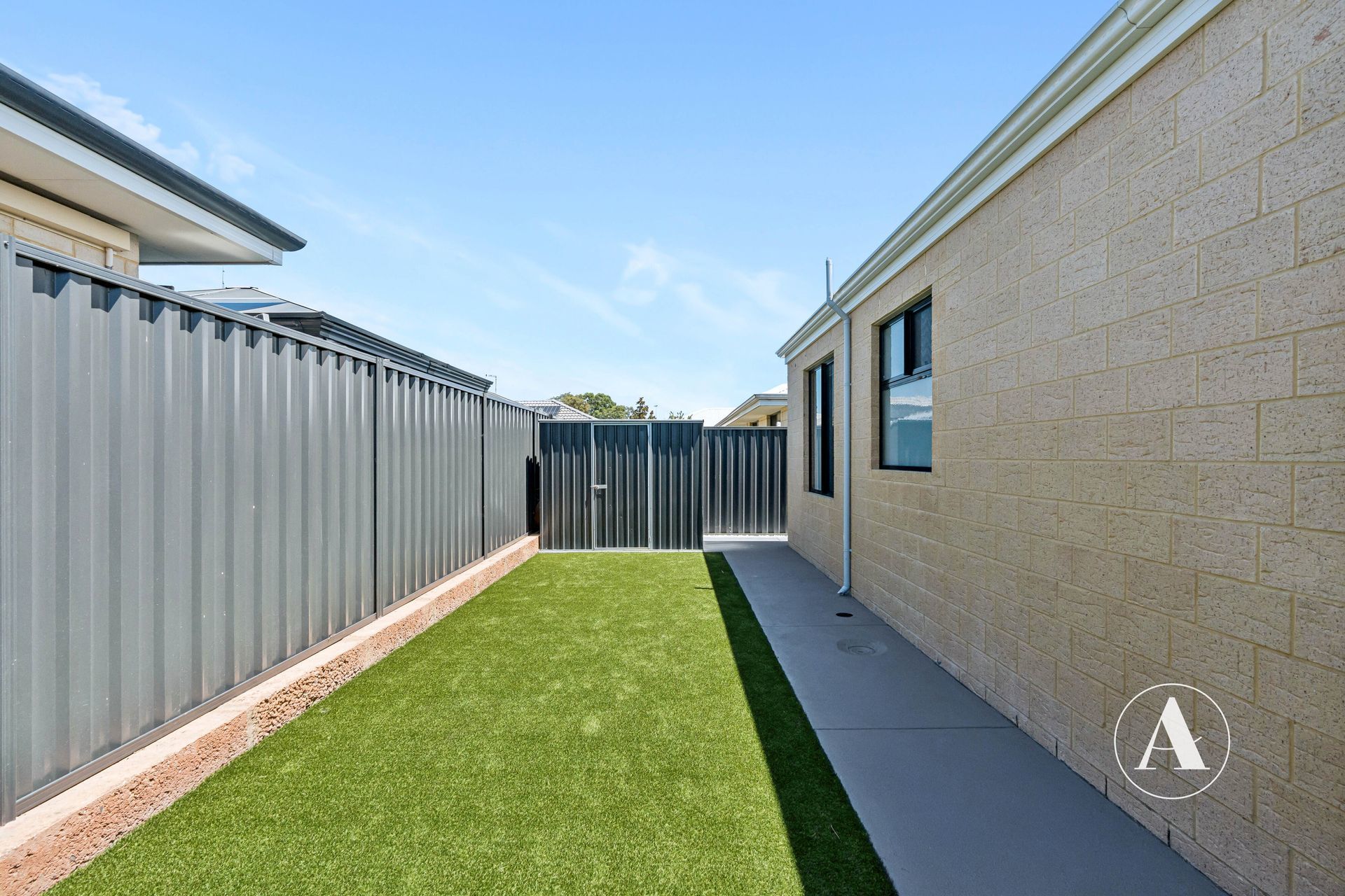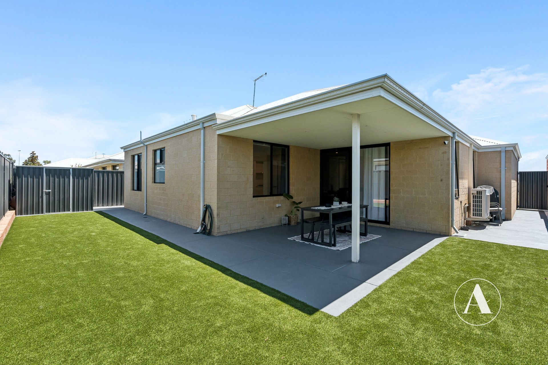 • Enclosed backyard with an artificial grassed area perfect for the kids and pets to run around and play