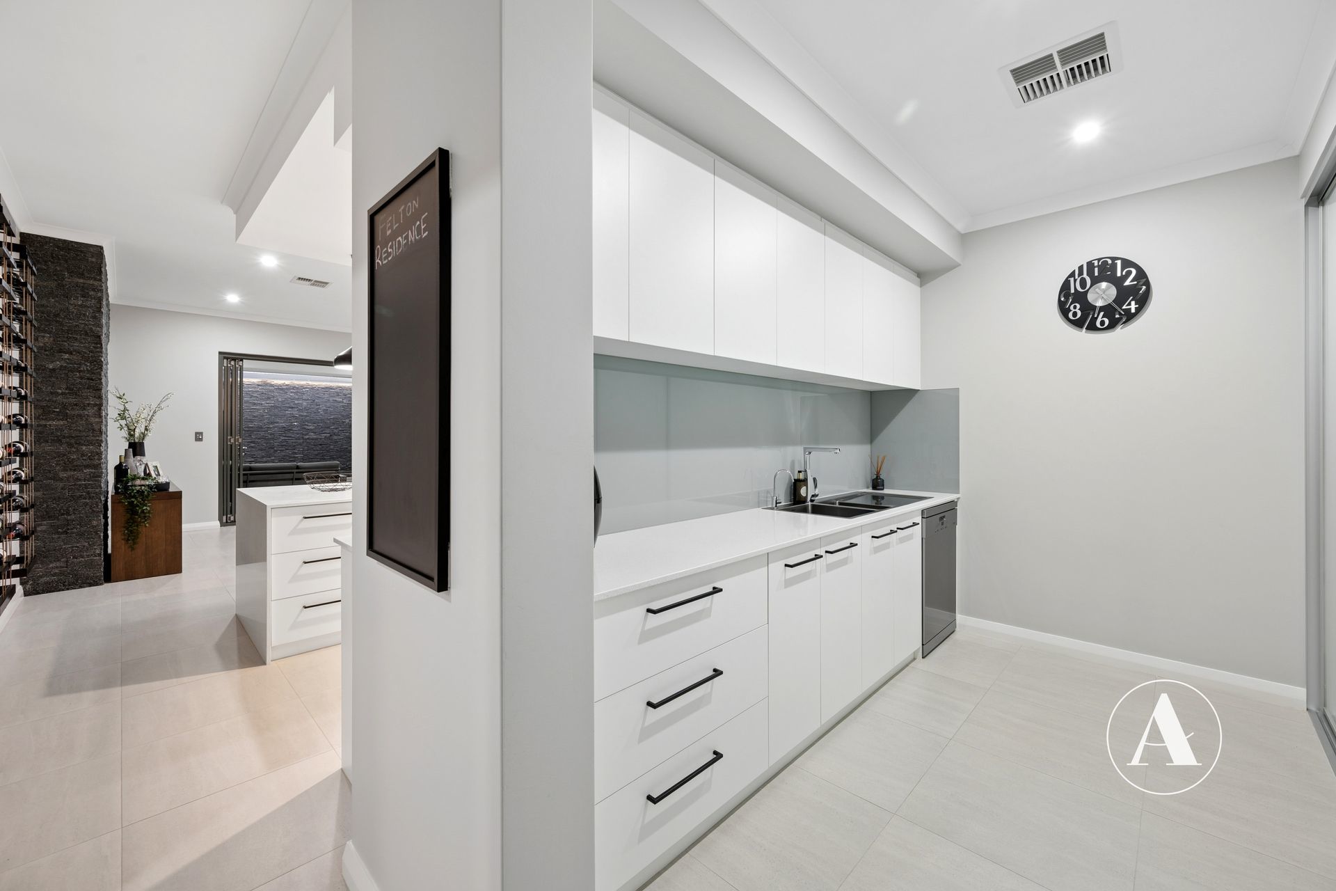 • The additional scullery tucked behind the kitchen boasts a triple pantry with glass sliding doors, stone benchtops, overhead cupboards, glass splashback, and dishwasher. Perfect for all the behind-the-scenes prep, keeping the kitchen clutter free when entertaining family and friends.