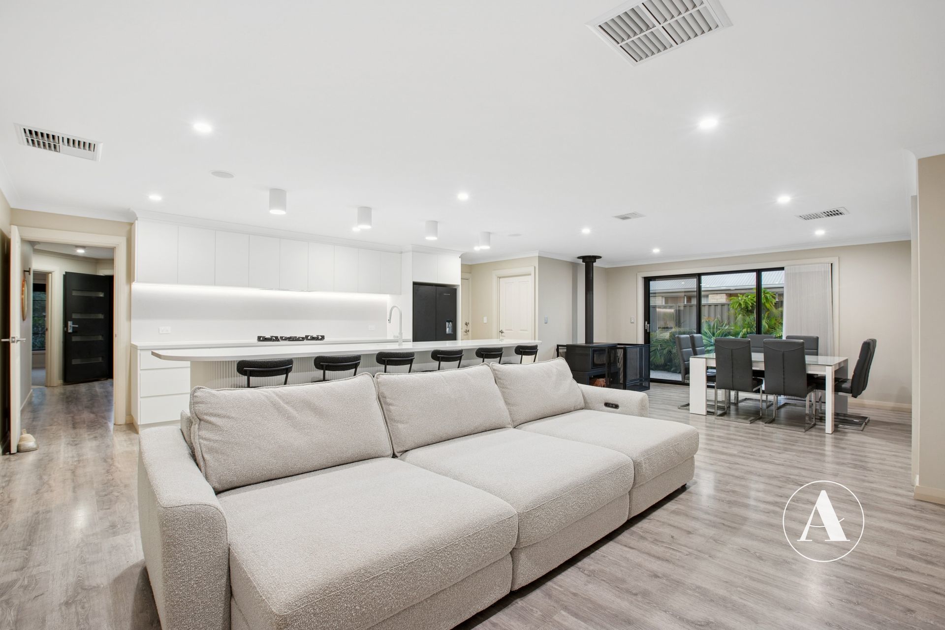 • Spacious, light-filled living areas with high ceilings and seamless access to the backyard, complemented by a cosy fireplace, creating a warm and welcoming family space.