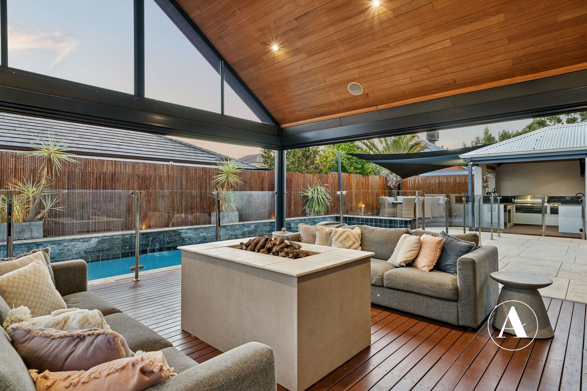 • Entertain in style under the decked alfresco featuring soaring raked ceilings, a ceiling fan, and a warm gas fireplace, all overlooking the resort style pool for the ultimate indoor-outdoor lifestyle.