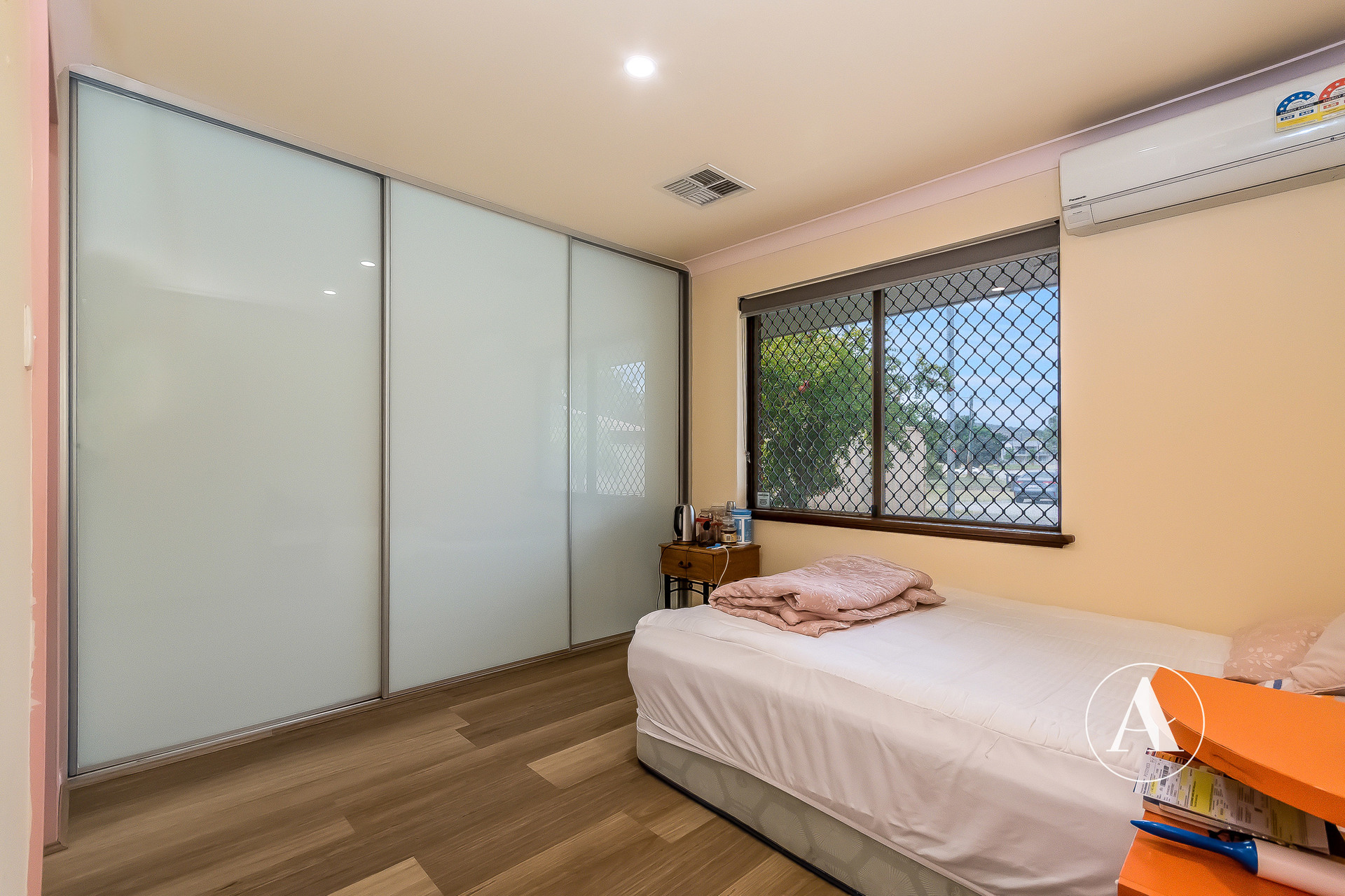 Set on a sizeable parcel of land, the home provides a functional layout with multiple living zones and comfortable accommodation for growing families. The main living area is serviced by a wall-mounted split system air-conditioner, ensuring comfort through the warmer months, while roller shutters across the front of the home add an extra layer of privacy and security.