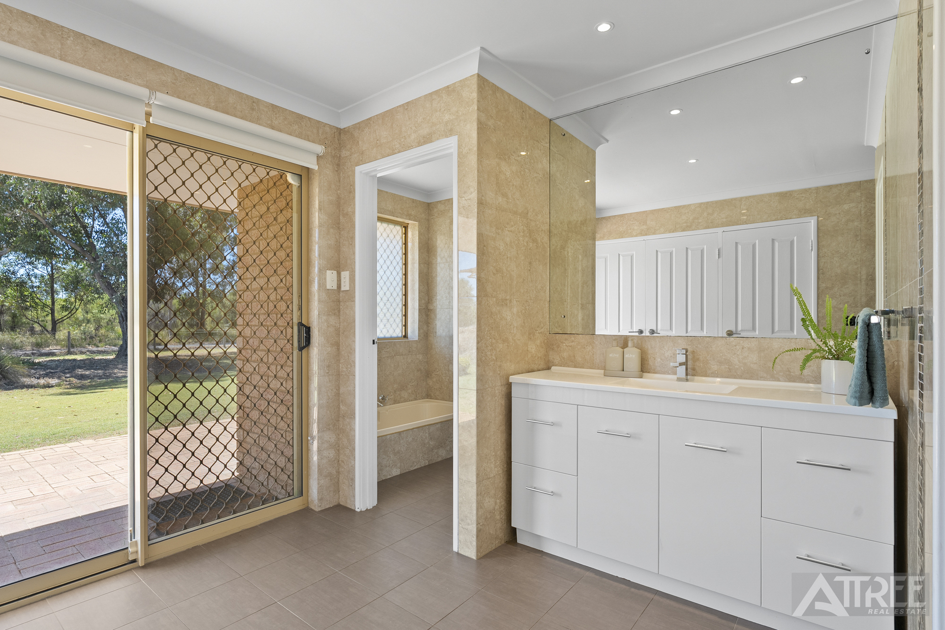 – Master bedroom is carpeted with a walk in robe and ensuite with shower, bath, single vanity and separate mud room with toilet and vanity.