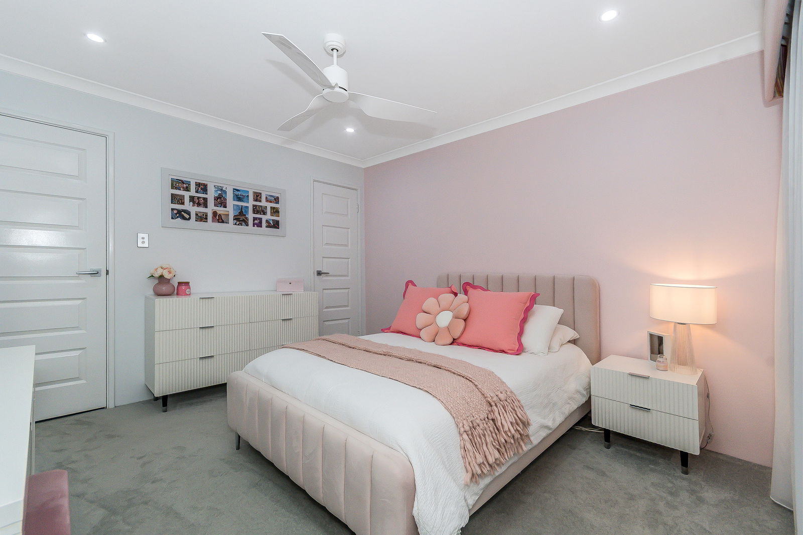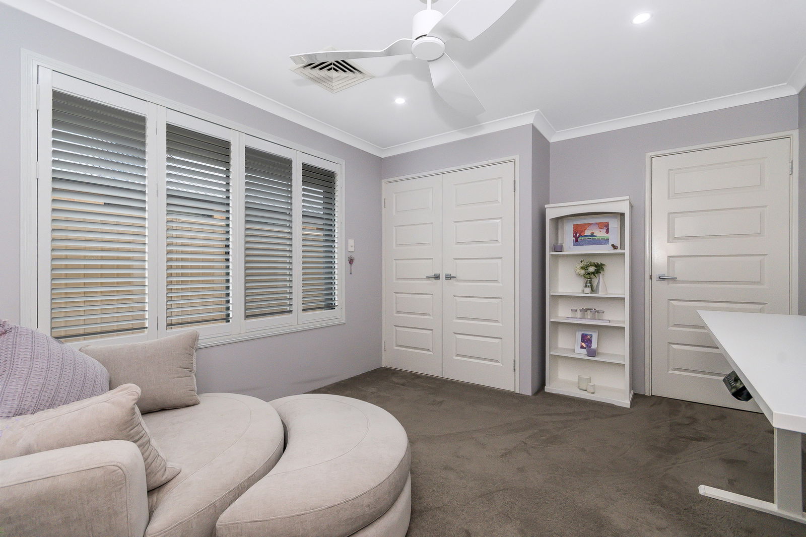Three additional bedrooms continue the home’s sense of comfort and quality, all generously sized with plush carpets, ceiling fans, and built-in robes. A second bathroom continues the same luxurious tone with twin vanities, a deep bathtub, and separate WC, while a light-filled activity room provides a perfect space for a study nook, play area, or quiet retreat.