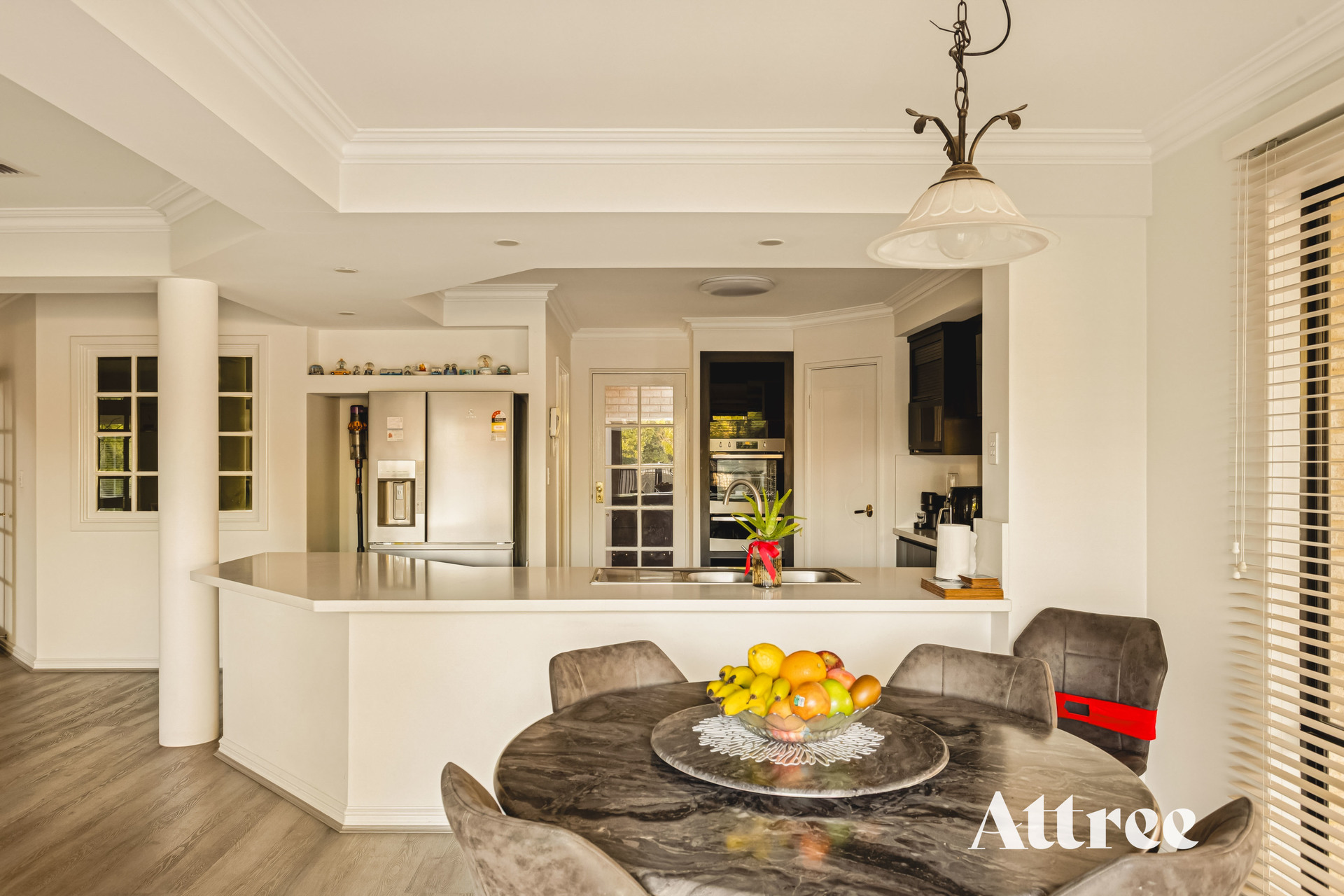 Returning, the sunken formal lounge and adjacent formal dining area combine for a sophisticated, premium feel, with the formal lounge in-particular highlighting the impressive architectural design of the house.