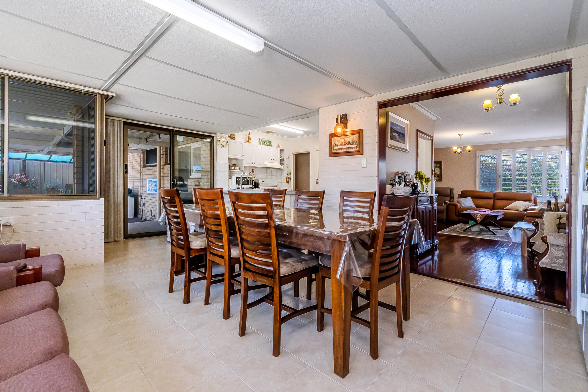 Family dining area overlooking the backyard.