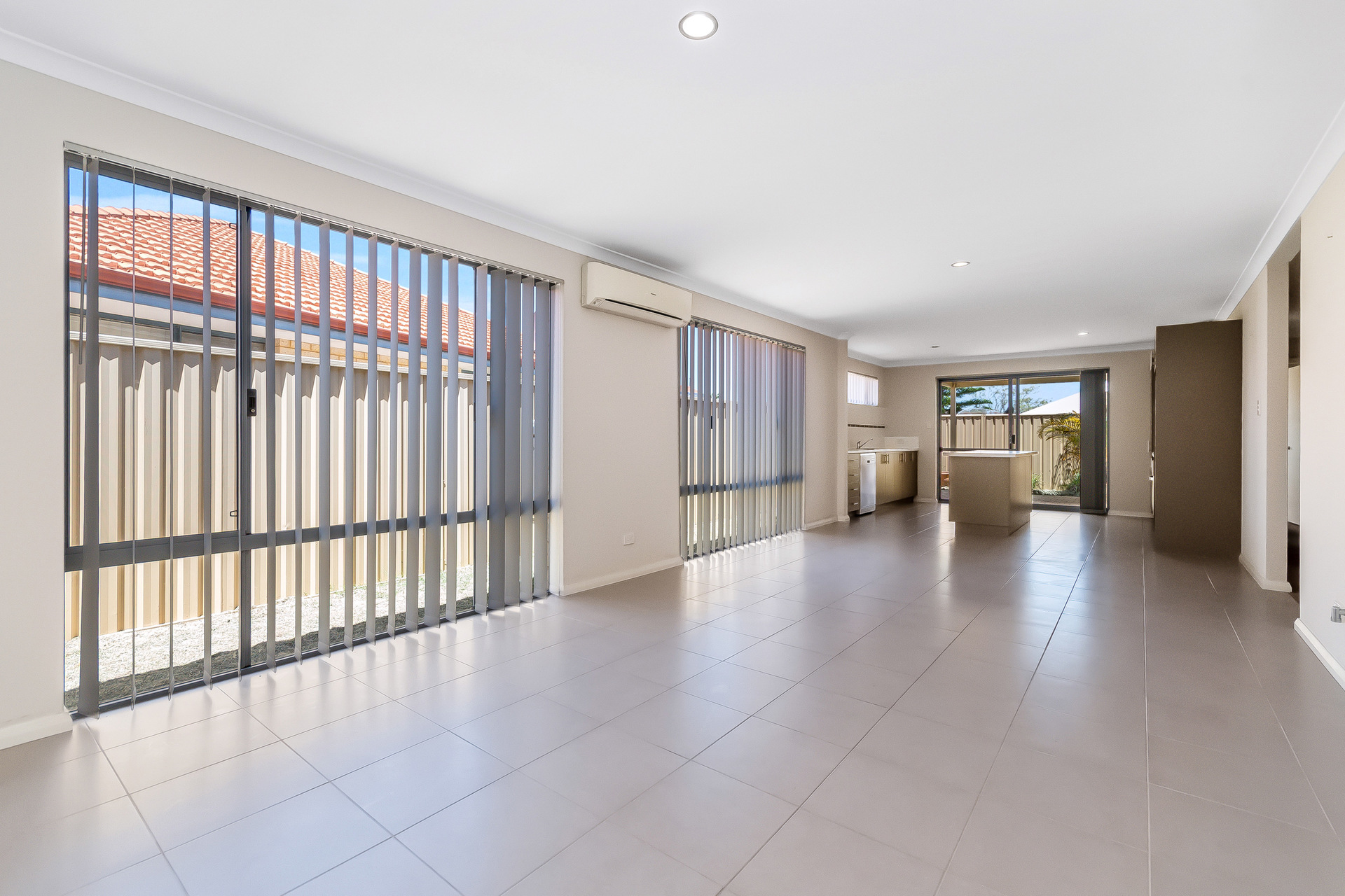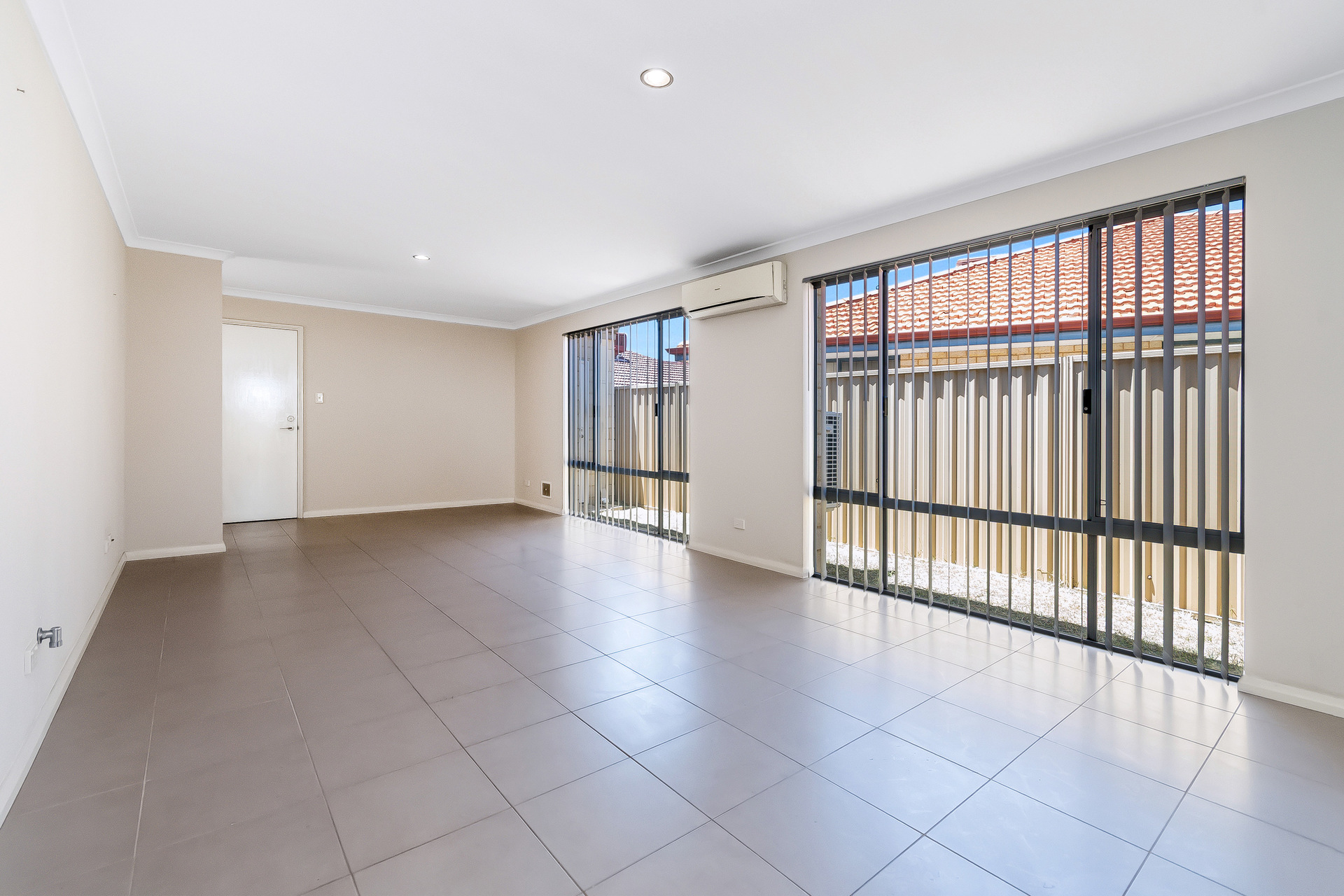 Stepping inside you’re greeted by a warm and inviting entryway featuring a solid wood door tiled flooring and modern downlights that flow through to the open-plan meals and living area. This spacious zone is fitted with a Panasonic split system for year-round comfort, vertical blinds, and a gas bayonet, creating a welcoming space for family gatherings and entertaining.