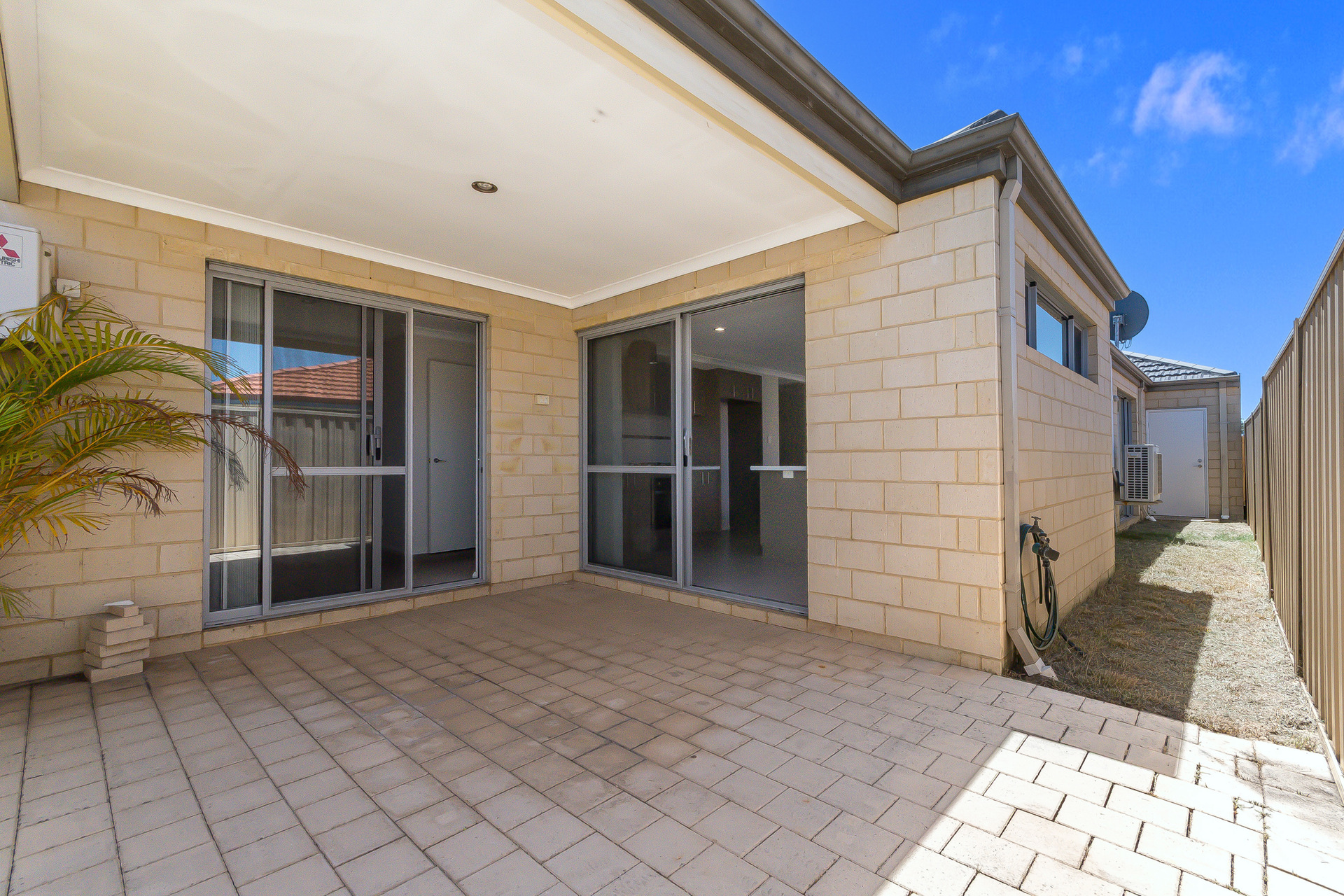 Outdoors, you’ll find a private paved alfresco area under the main roof complete with lighting and an exhaust fan – perfect for year-round entertaining. The low-maintenance garden bed provides a touch of greenery without the upkeep, making it ideal for busy lifestyles.