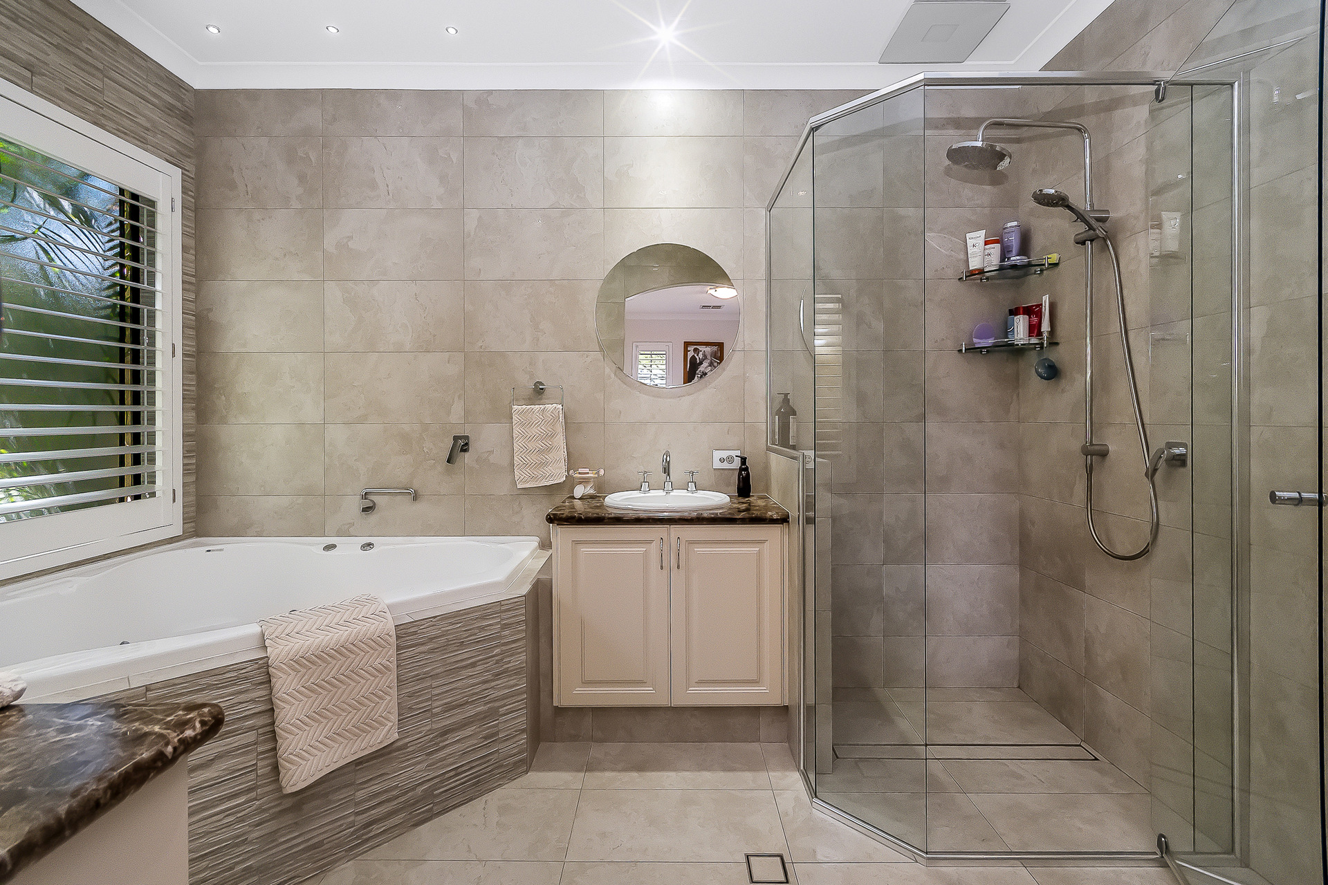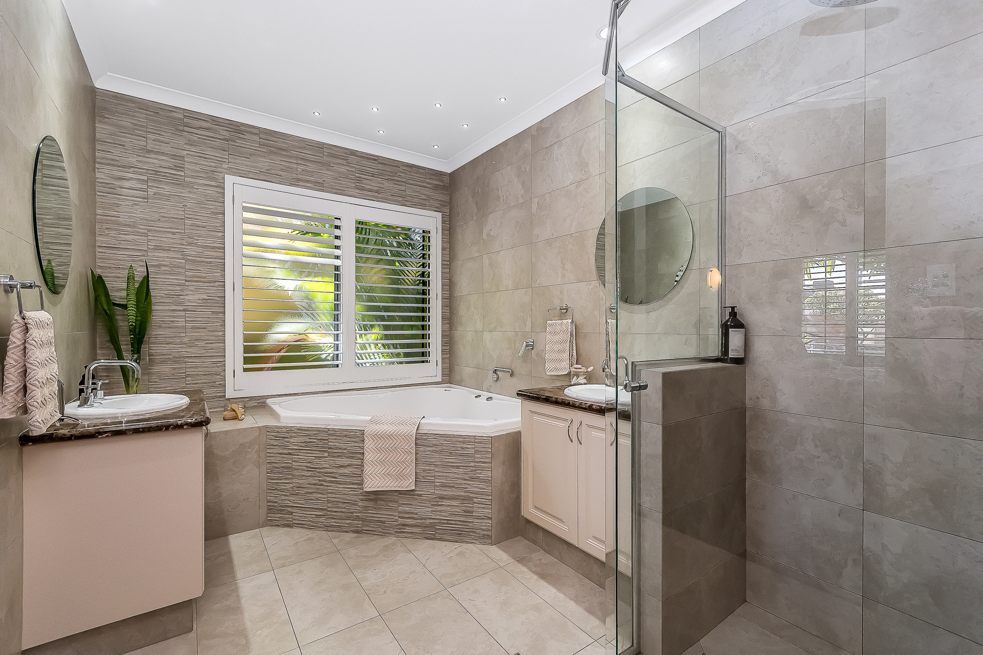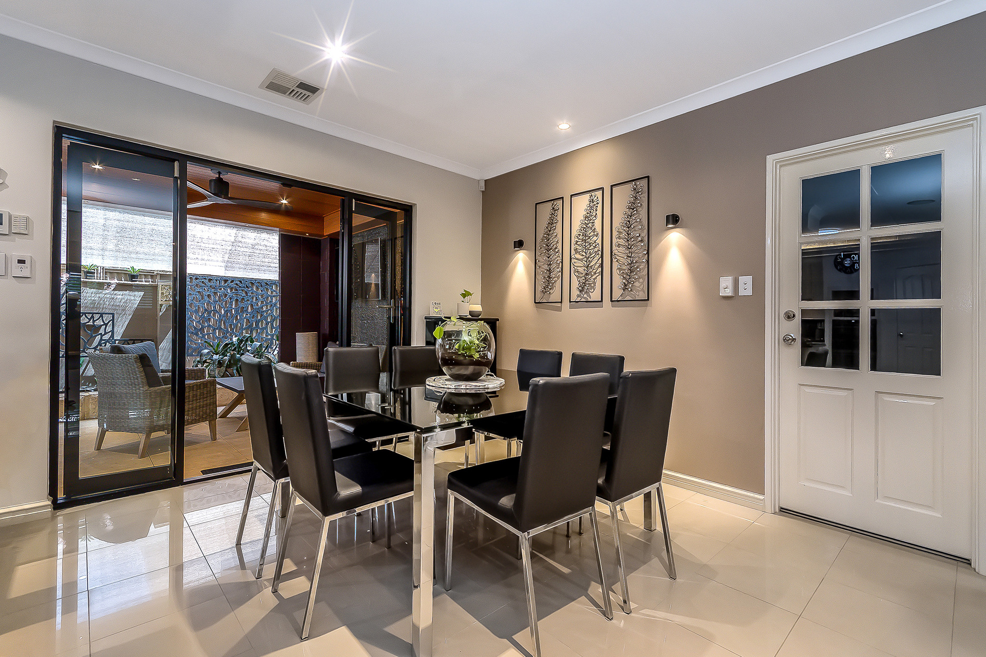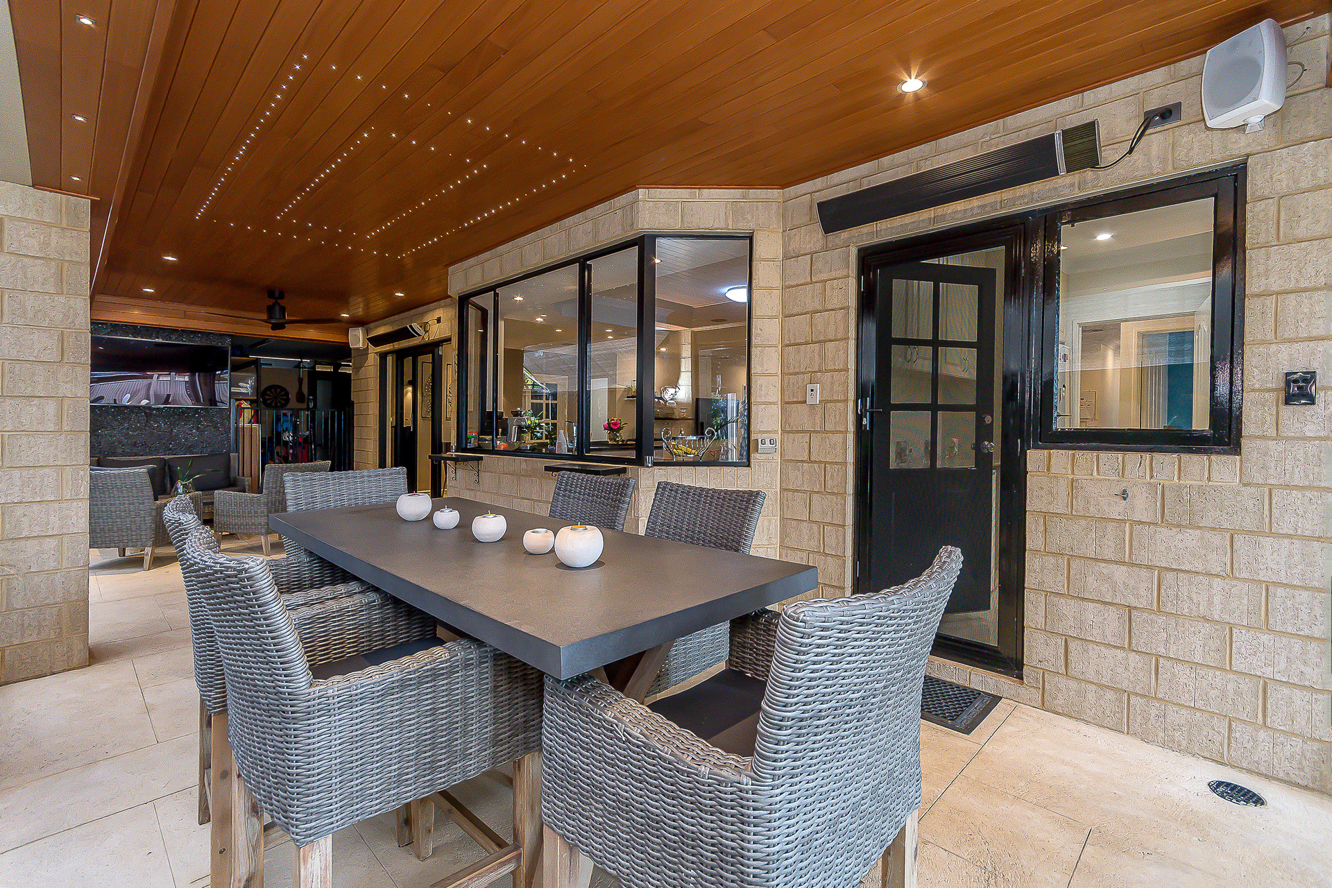 The outdoor spaces are designed to offer both connection and retreat. Two distinct entertaining areas provide choice and privacy: