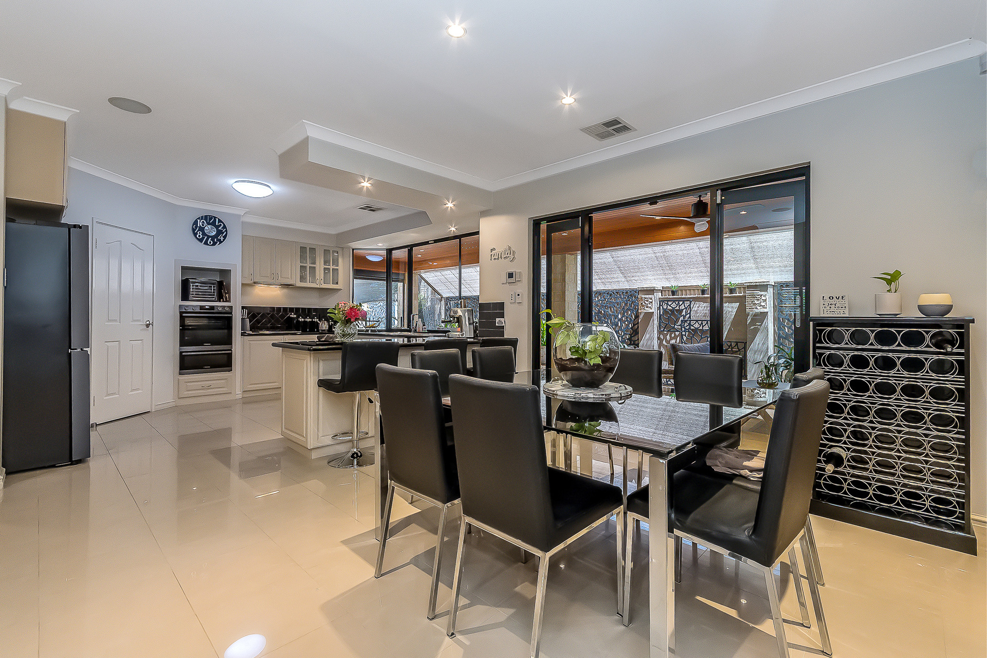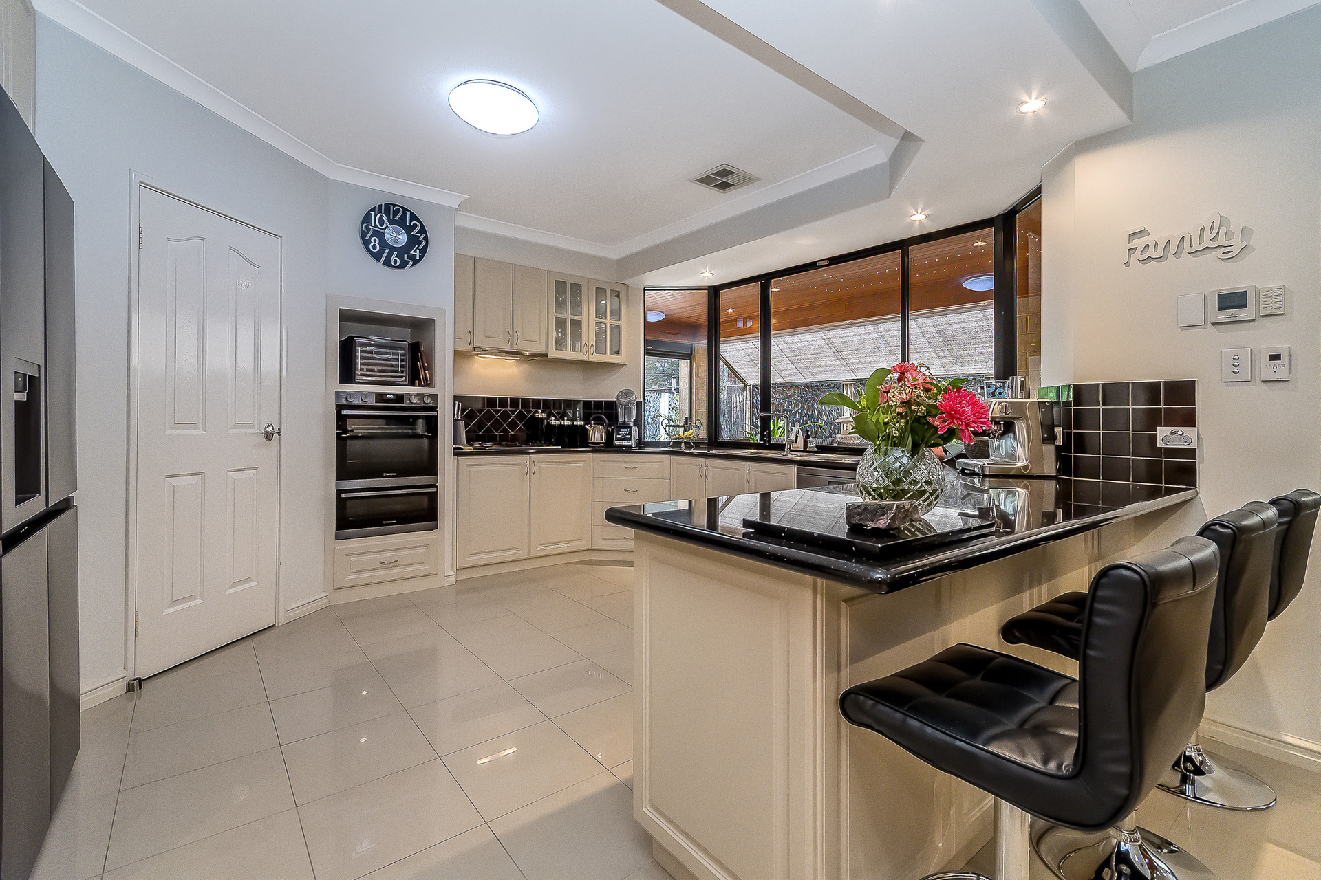At the heart of the residence sits an expansive, bespoke kitchen, designed to anchor both daily life and entertaining. Generously proportioned and beautifully appointed, it overlooks the main internal living areas as well as both outdoor entertaining zones, allowing seamless connection between inside and out.