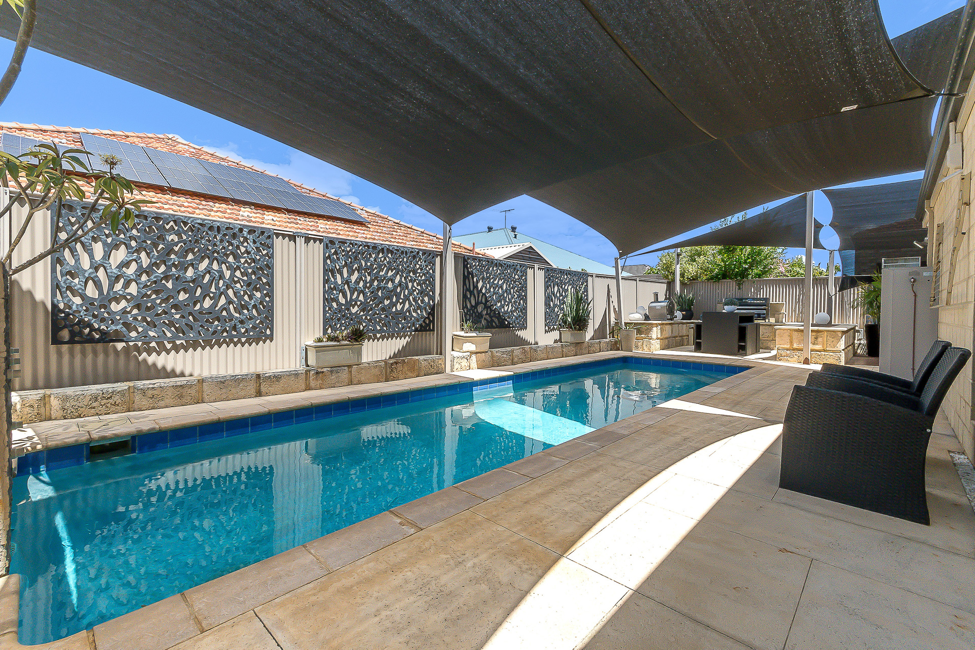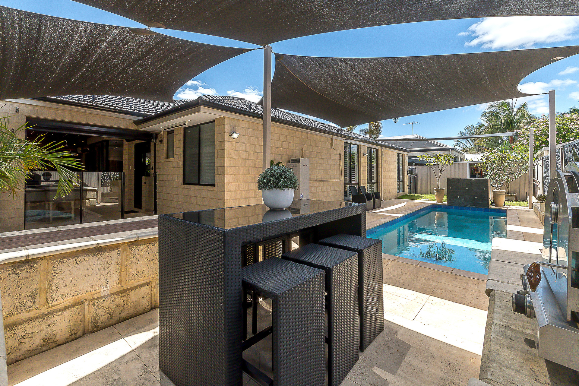 A built-in alfresco overlooking the below-ground pool, ideal for entertaining and family gatherings