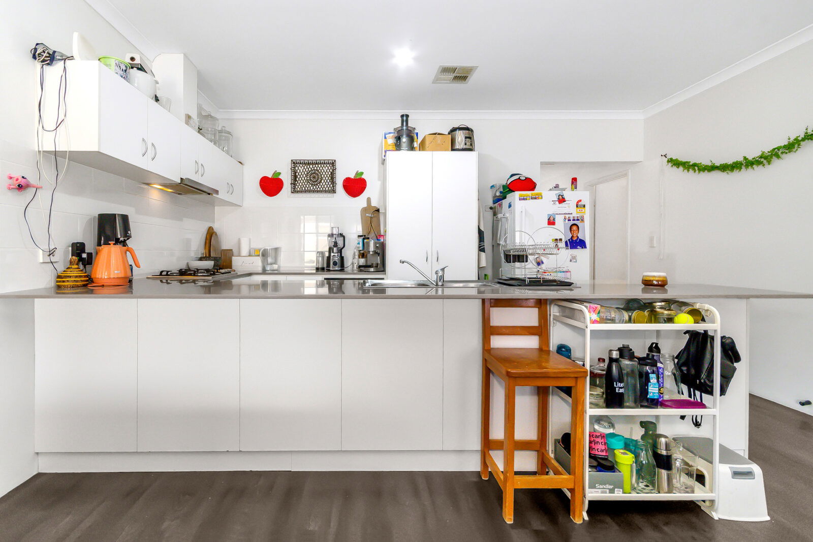 Inside, you will find easy-care vinyl flooring flowing throughout, paired with high ceilings to the living space to enhance the sense of openness. The heart of the home is the wonderful kitchen, featuring sleek stone benchtop that double as a breakfast bar, stainless steel appliances including a dishwasher, and plenty of storage, overlooks the open-plan meals and family area, it’s the perfect setup for everyday living.