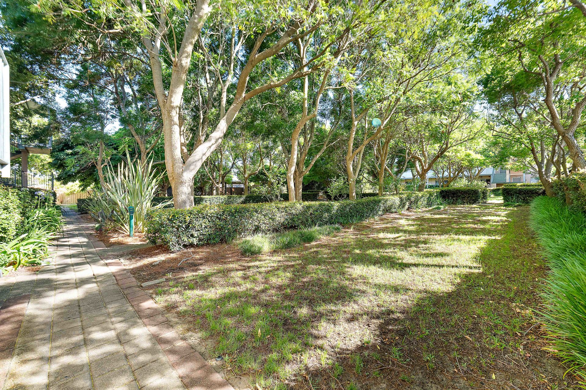 # Well-maintained complex with landscaped common areas and mature trees.