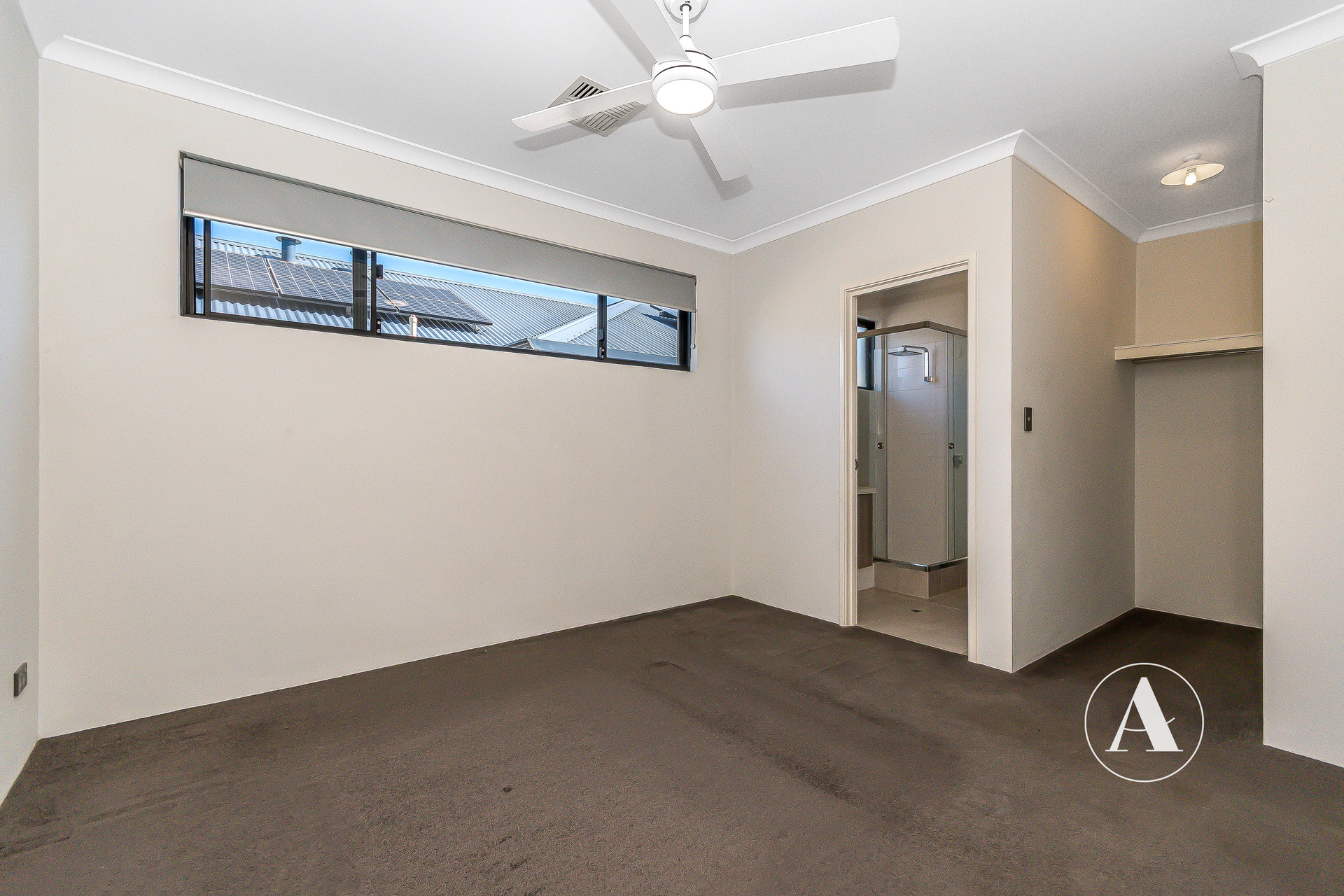 # Master bedroom complete with ceiling fan and walk-in robe