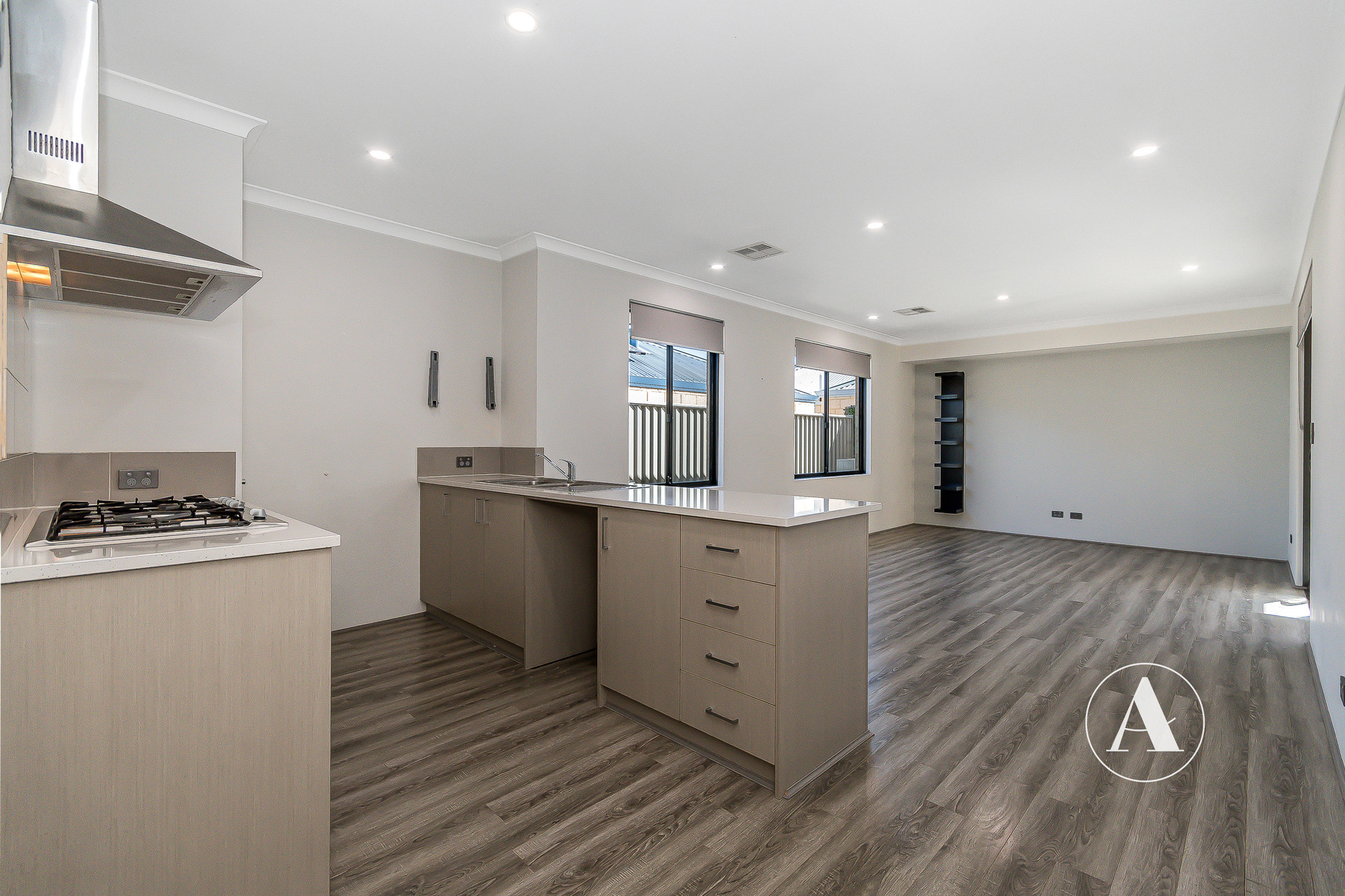 # Kitchen overlooks the living and dining area – perfect for everyday living and entertaining
