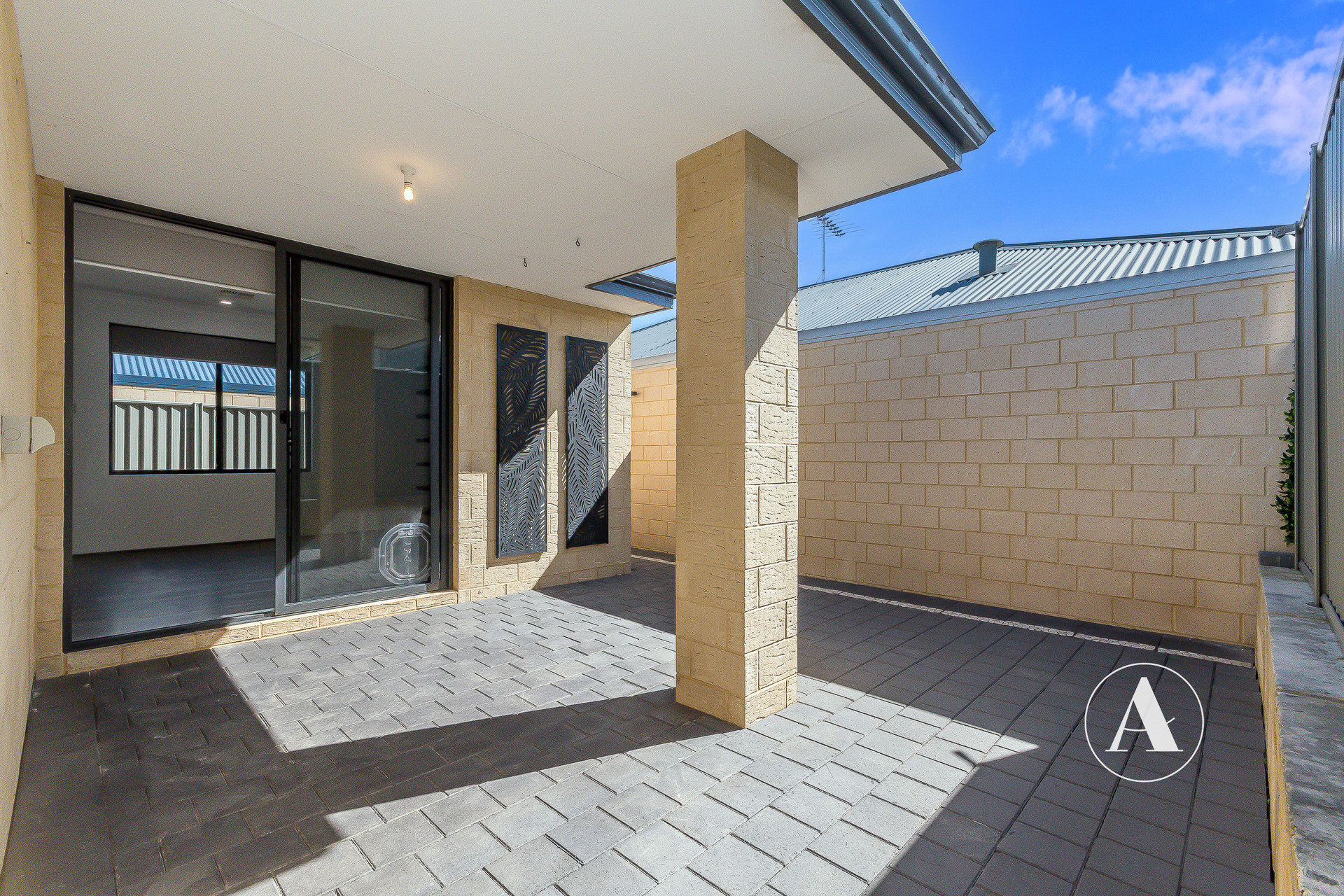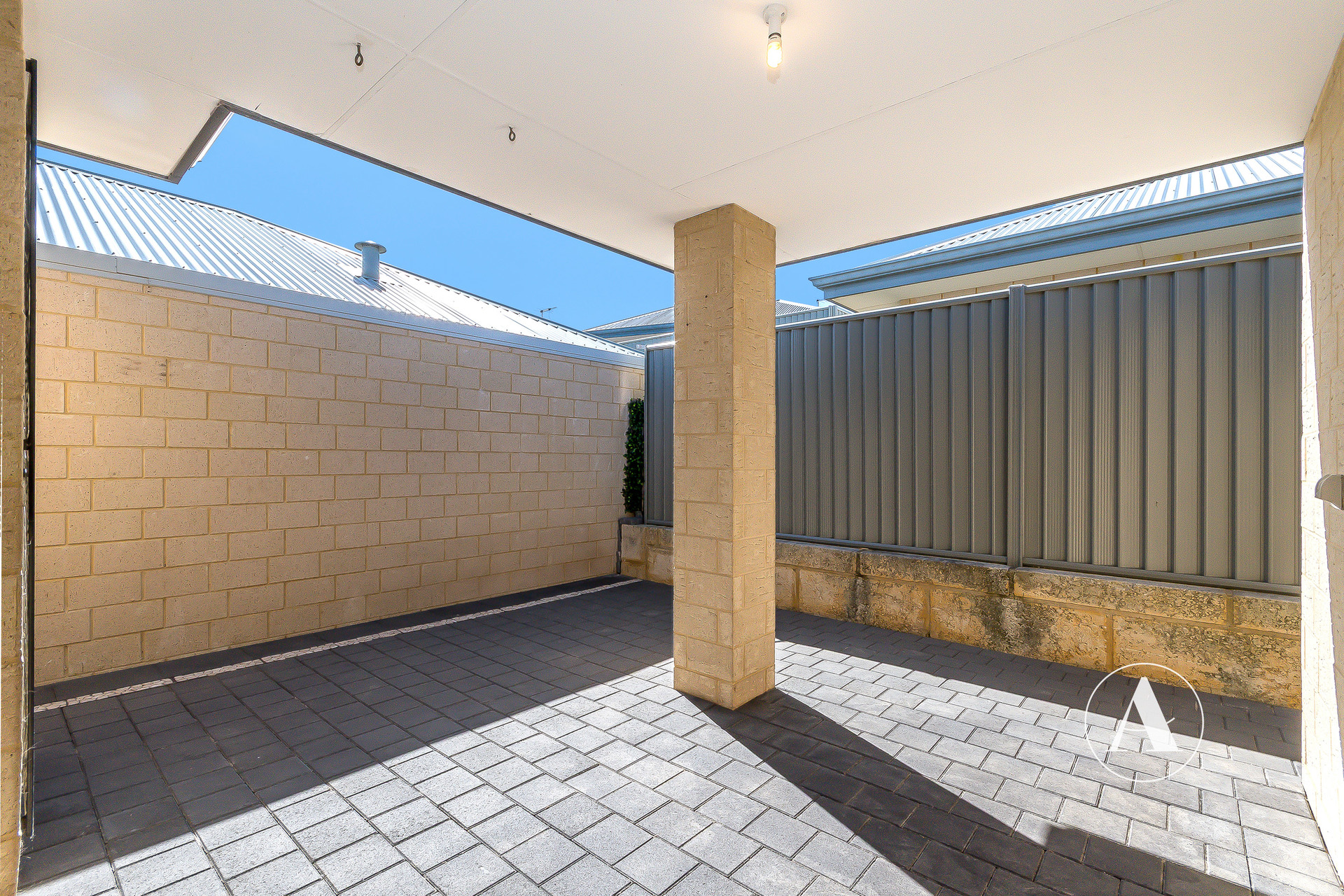# Covered alfresco area overlooking a fully paved backyard – a low maintenance outdoor space to relax or entertain