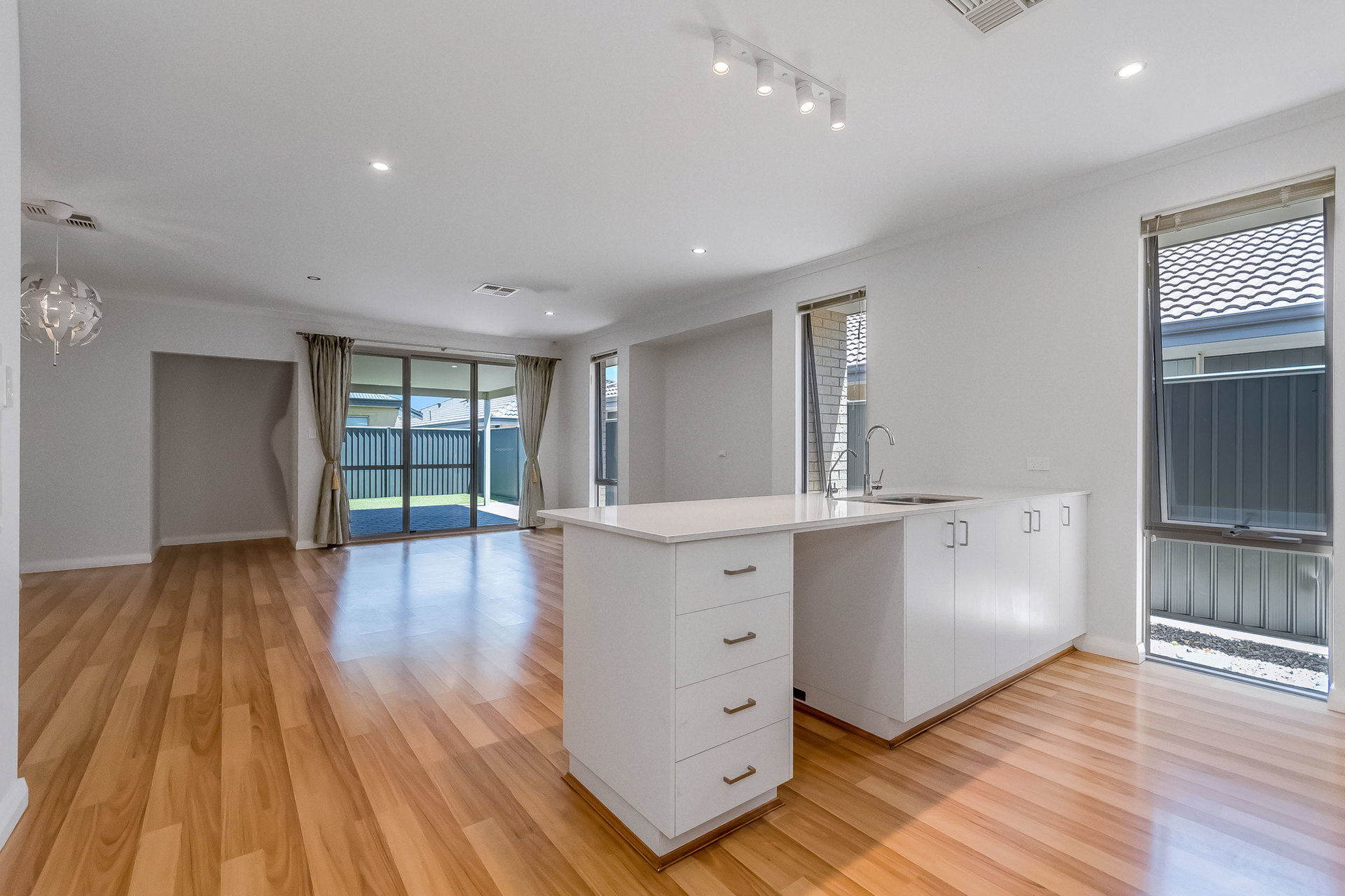 • Open-plan kitchen, living, and dining area
