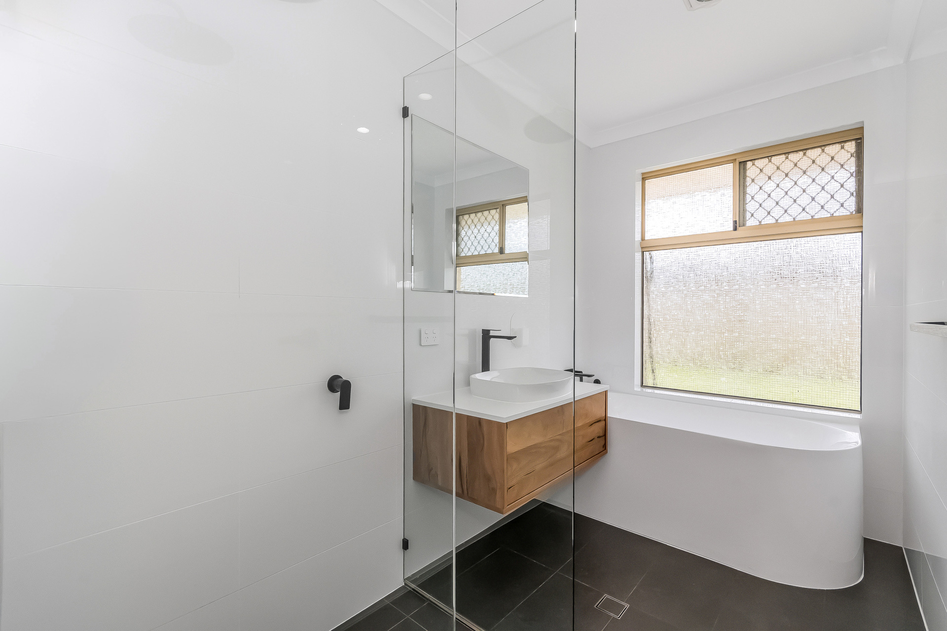 # Five spacious bedrooms including a master retreat with walk-in robe, barn-style sliding door to ensuite, and a luxurious renovated bathroom featuring a large shower