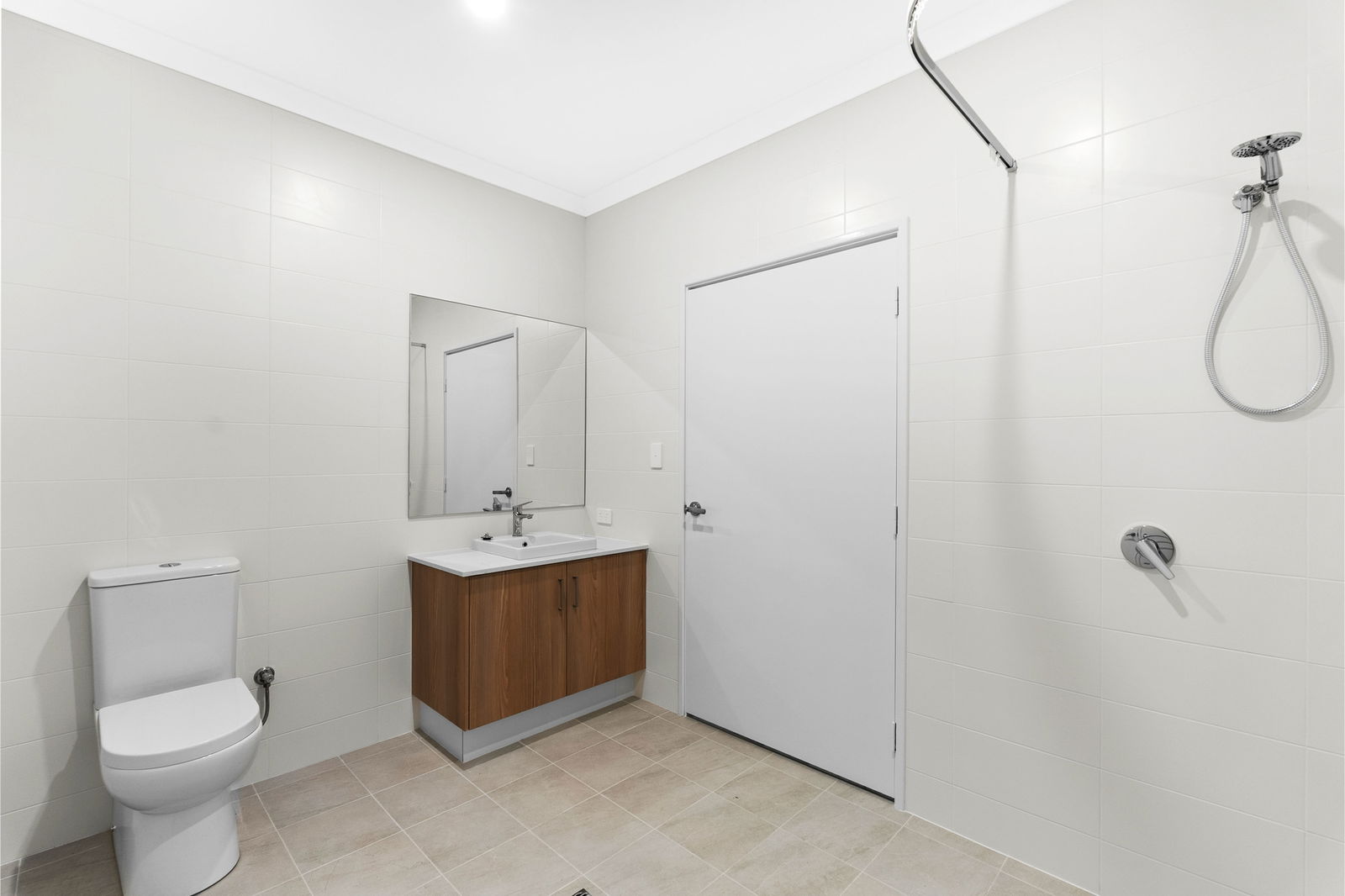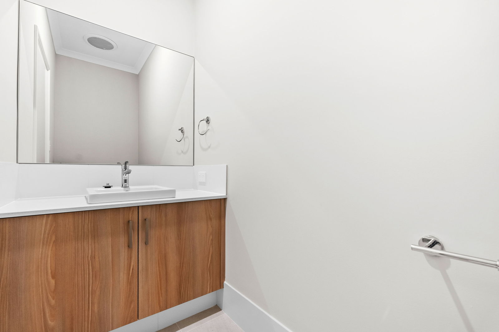 # Bathrooms & Powder Room: Main and ensuite with floor-to-ceiling tiling, plus a convenient powder room with extra toilet and sink.