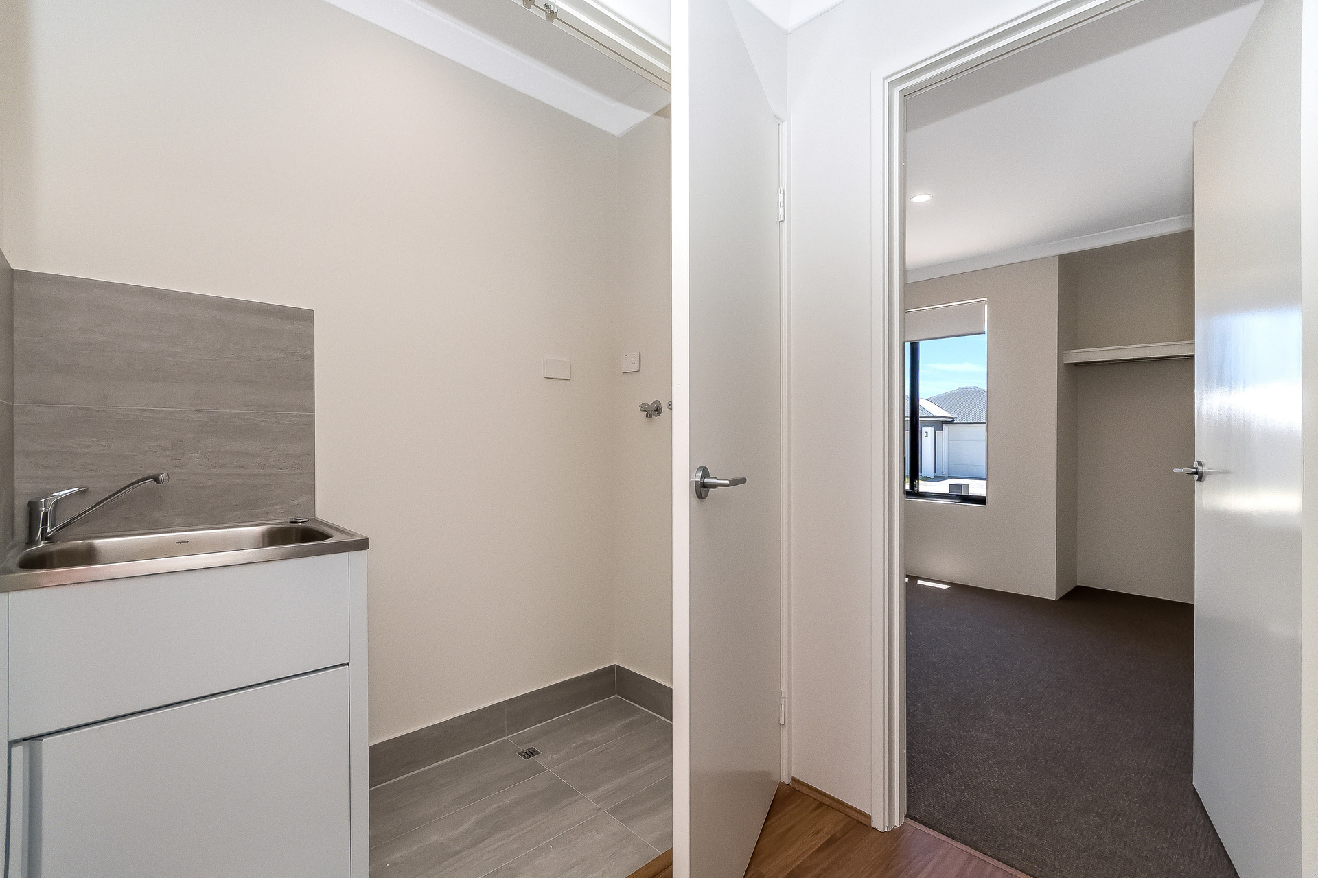 # Enclosed laundry and linen storage hidden neatly behind closed doors, keeping the home uncluttered and secure