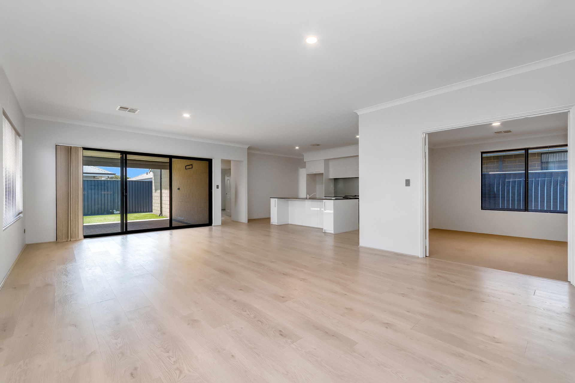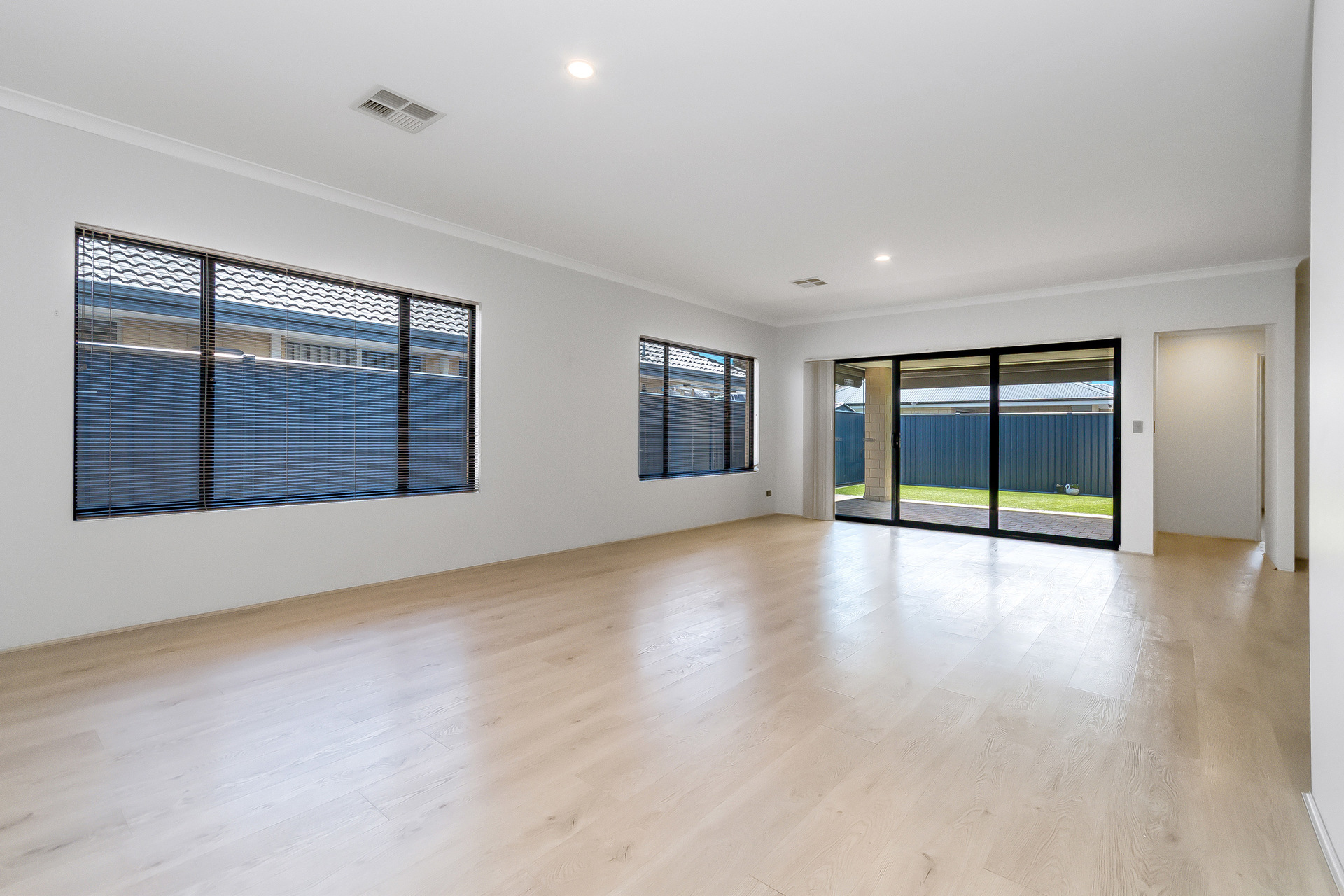 # Expansive alfresco area with manual café blinds, creating a versatile indoor-outdoor entertaining zone