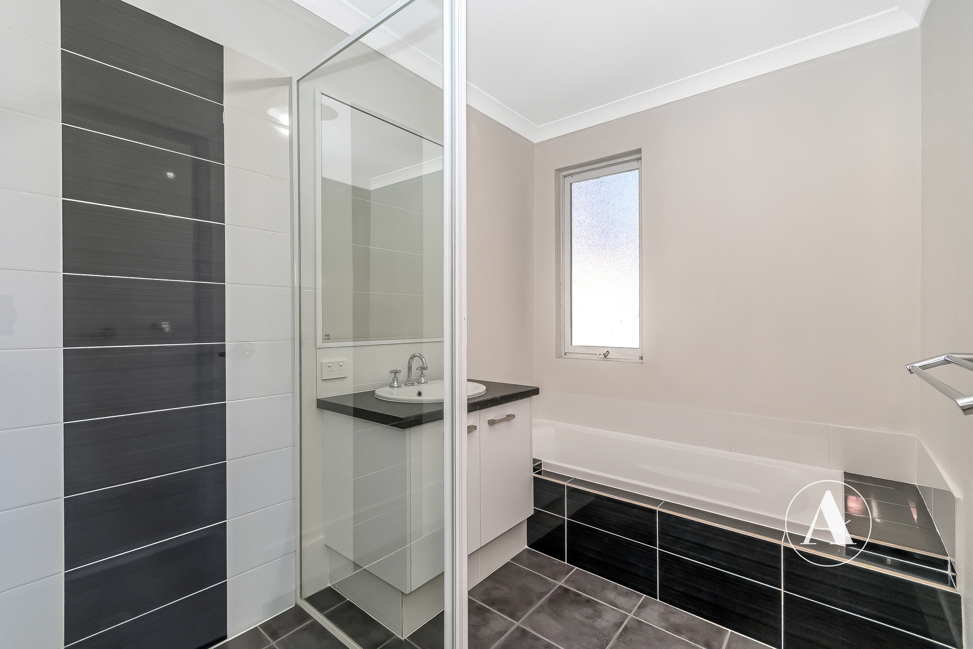 # Main bathroom has cabinetry and bench space to suit busy households as well as a bath – perfect for bathing young children or enjoying a relaxing soak after a long day