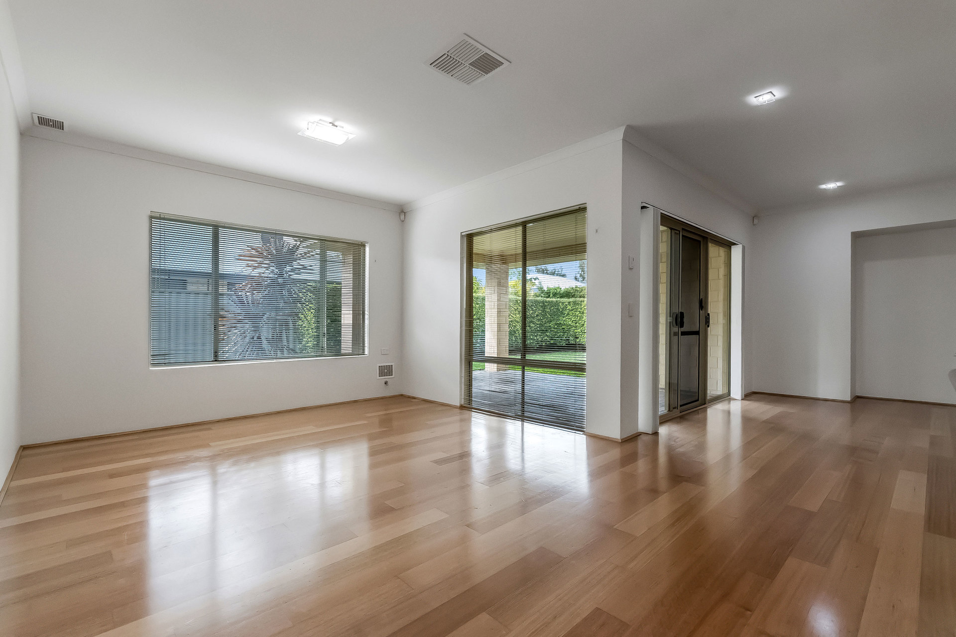 • Open-plan living and dining area with engineered timber flooring