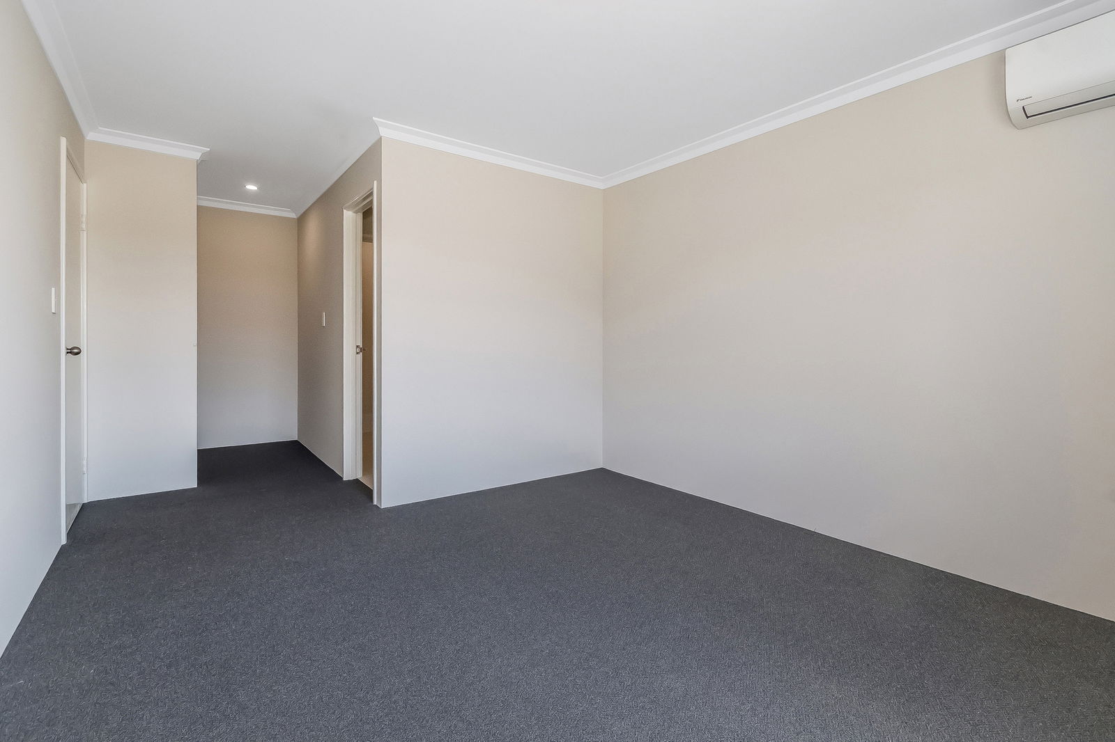 # Master bedroom with walk-in robe, split system air conditioning, and ensuite bathroom