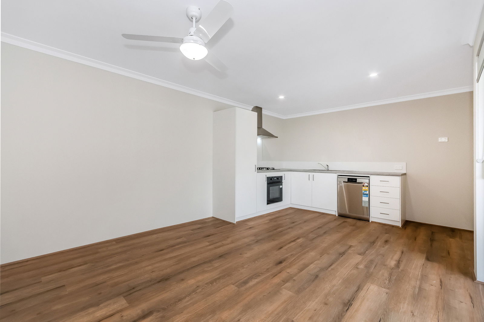 # Open-plan living and dining area flowing through to a small alfresco space – ideal for relaxing or entertaining
