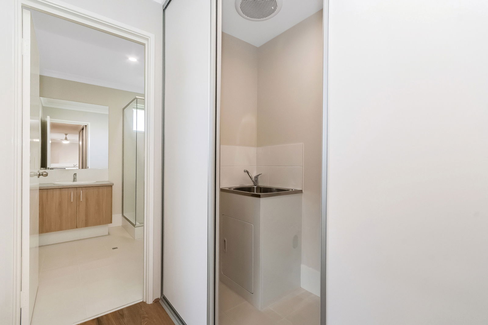 # Enclosed laundry area tucked neatly behind sliding doors
