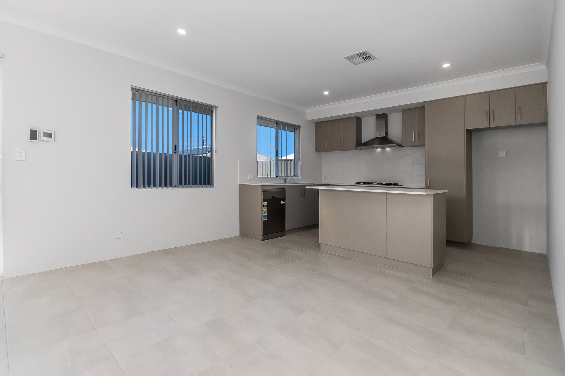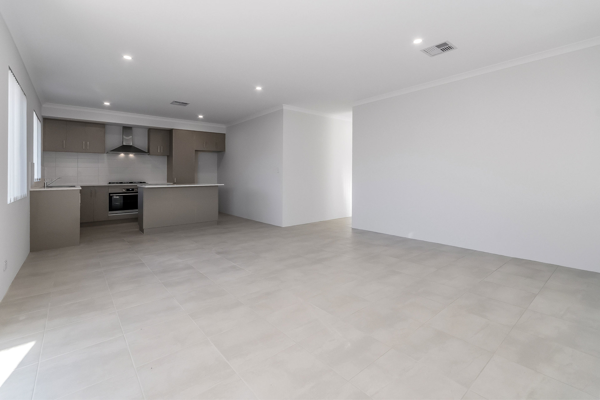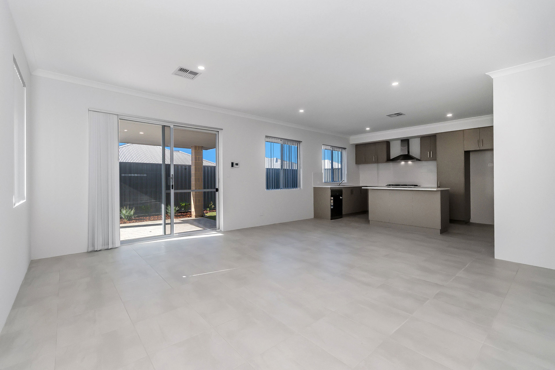 # Open-plan kitchen, living, and dining area filled with natural light