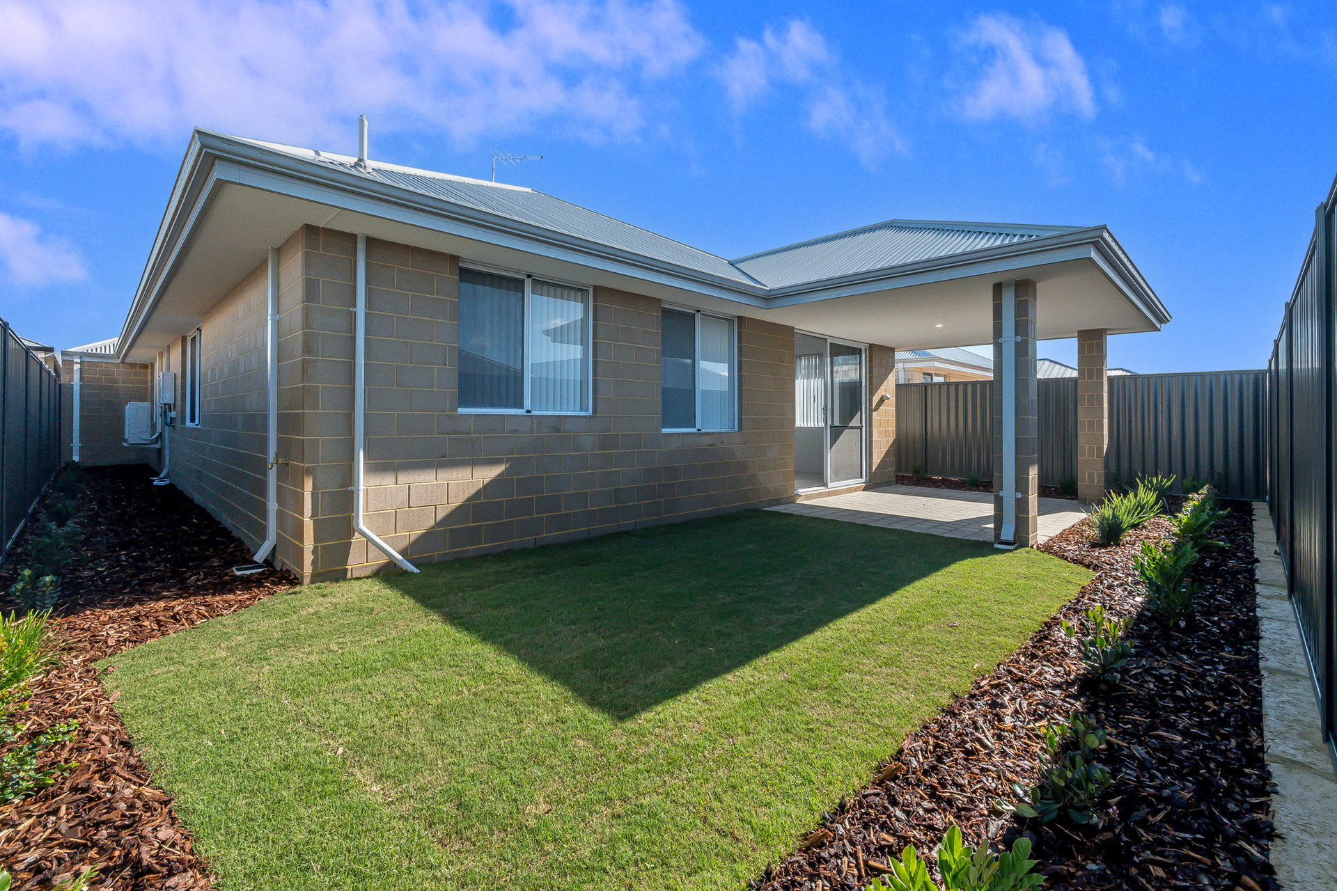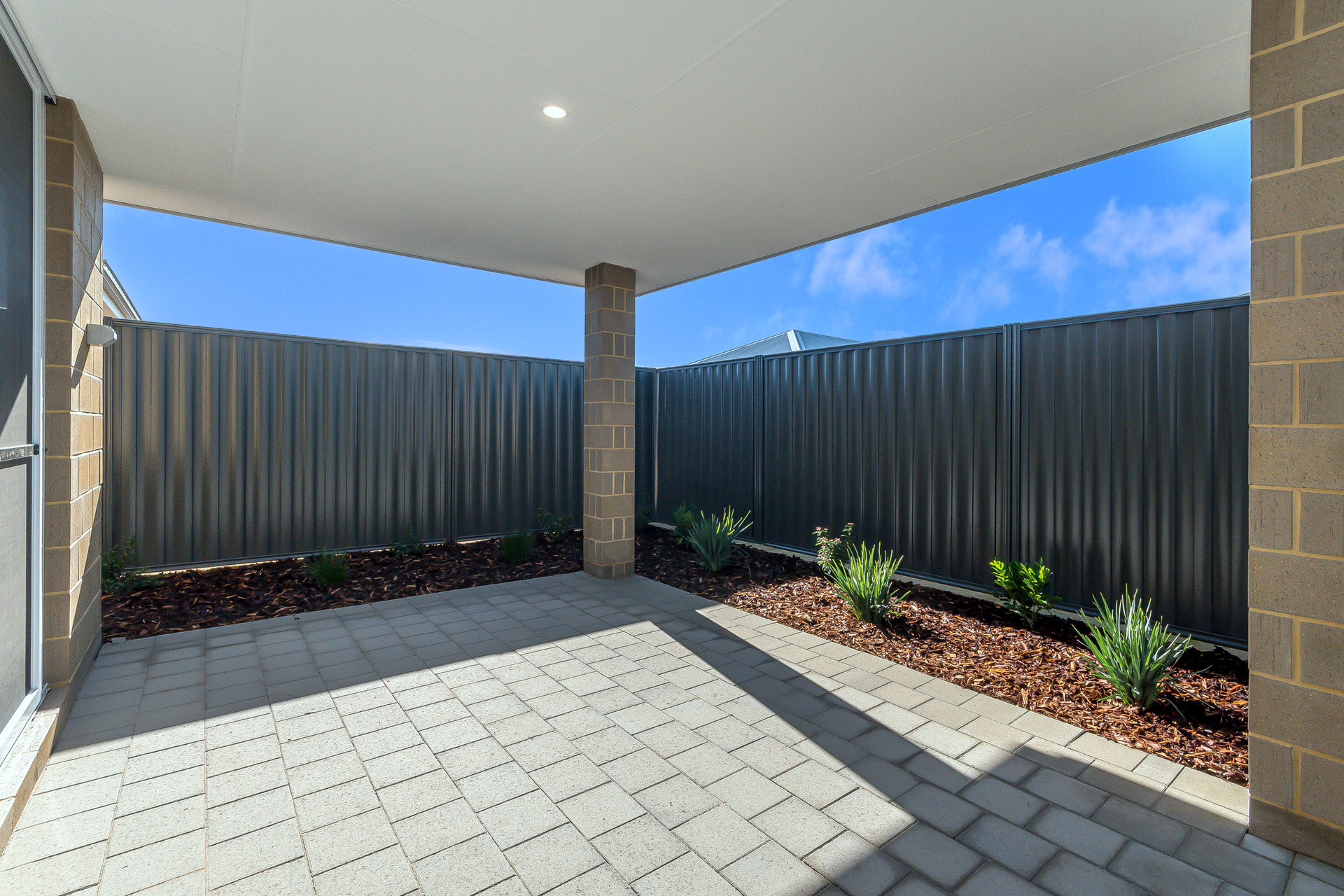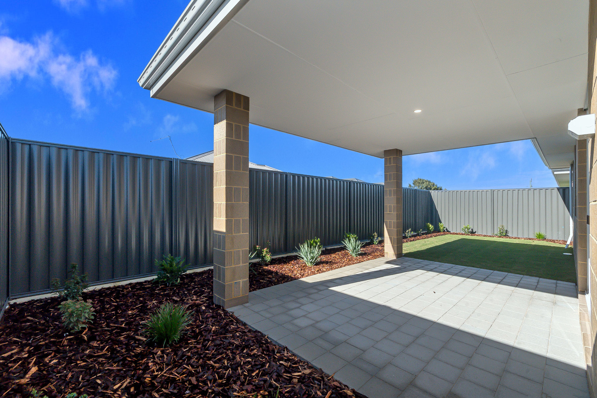 # Alfresco area overlooking a neat, low-maintenance backyard